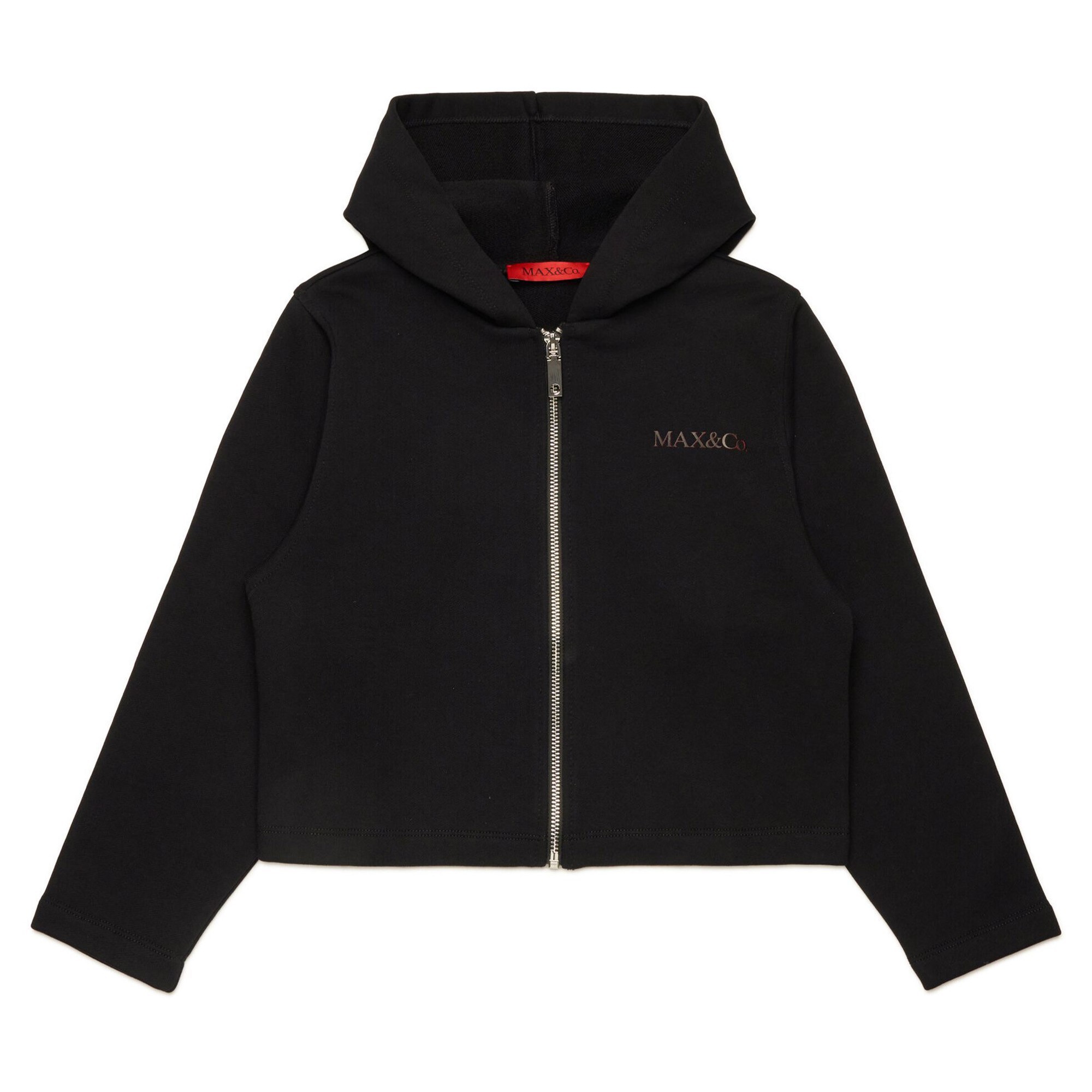 MAX&CO Felpa nera con cappuccio in cotone con cerniera bambina