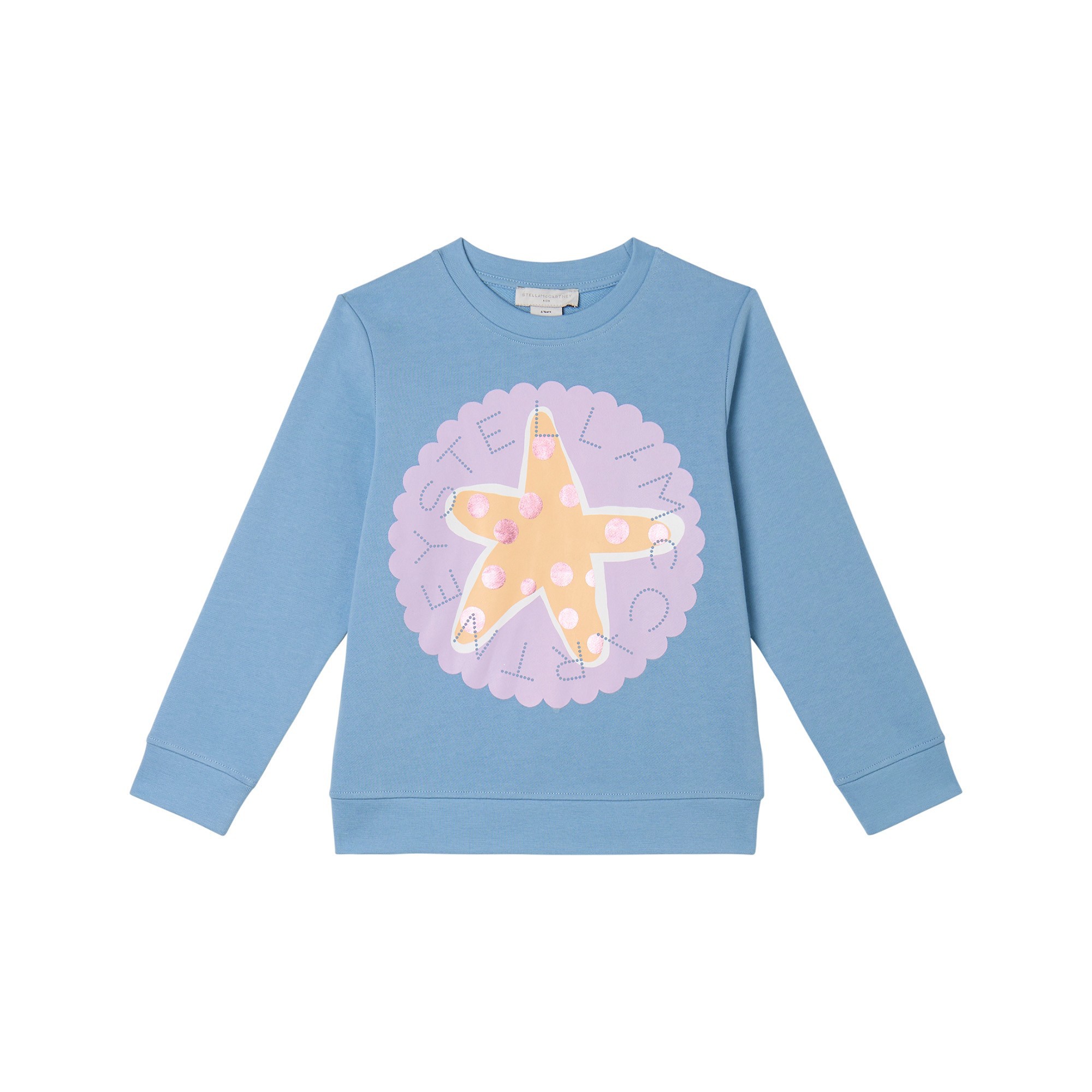STELLA McCARTNEY Felpa celeste con stella e logo bambina