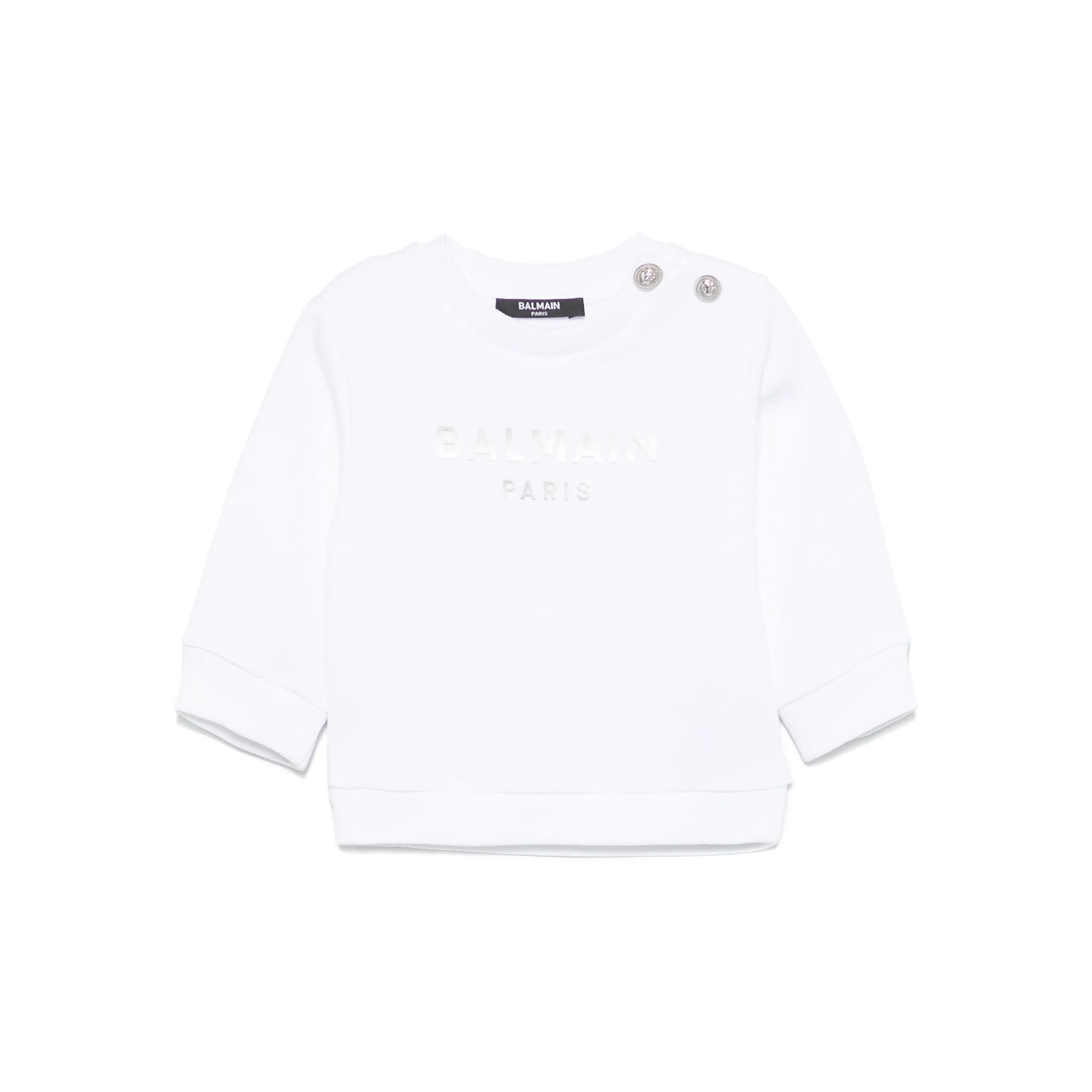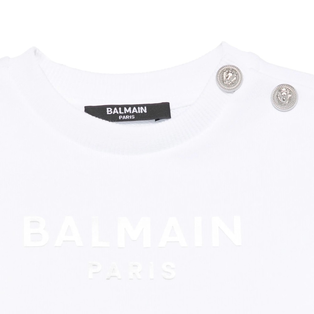 BALMAIN Felpa bianca girocollo con logo argentato neonati