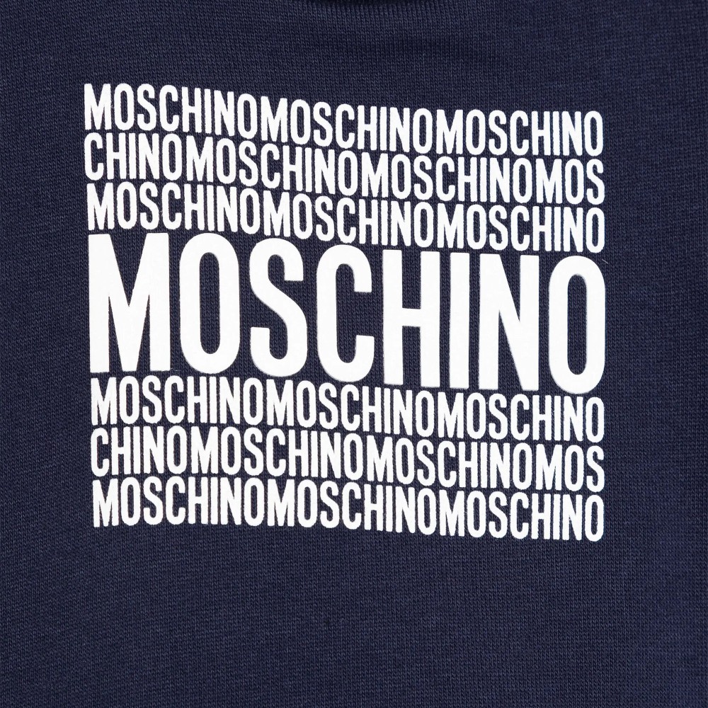 MOSCHINO Felpa blu navy girocollo con stampa logo neonato