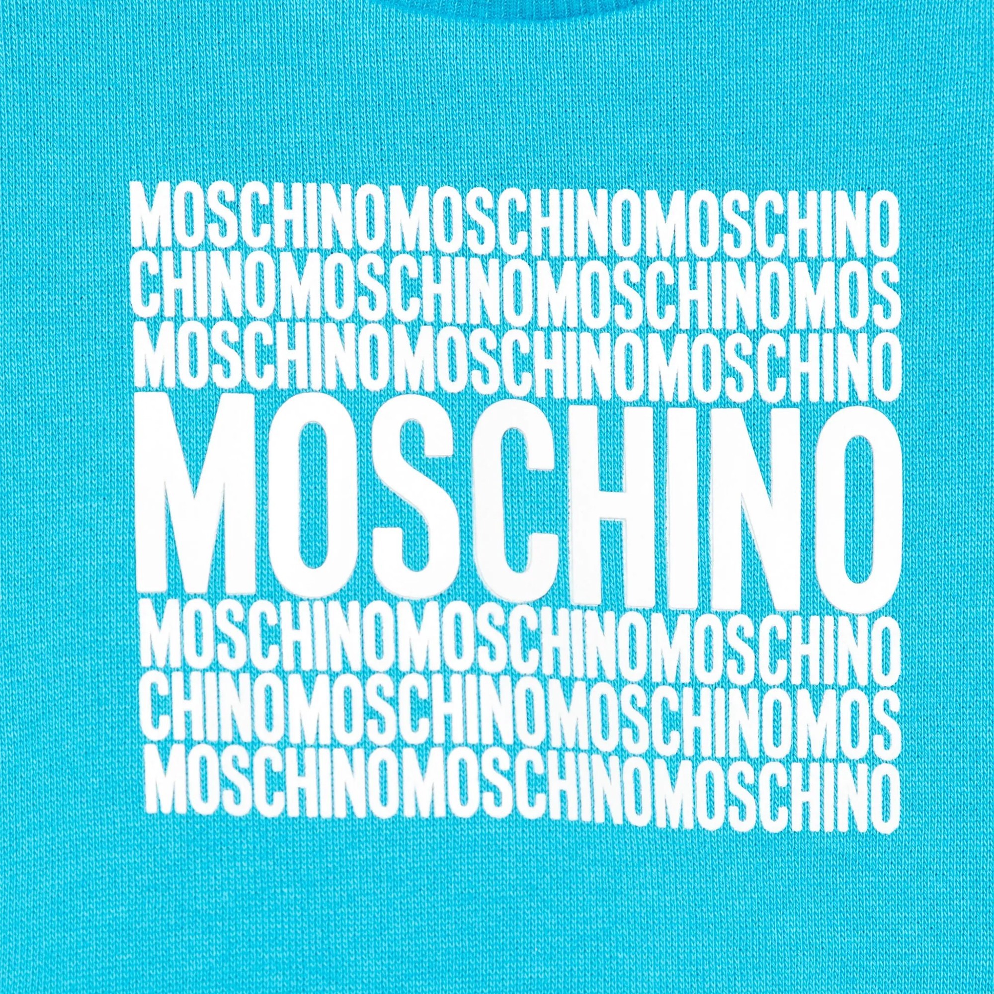 MOSCHINO Felpa azzurra girocollo con stampa logo neonato
