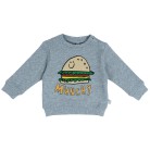 Felpa di colore grigio melange di Stella McCartney Kids in cotone organico con manica lunga modello girocollo con apertura laterale tramite 2 bottoni bottoccini a pressione,stampa decorativa frontale,tessuto a costine elasticizzate sui polsini e in vita etichetta iconica laterale