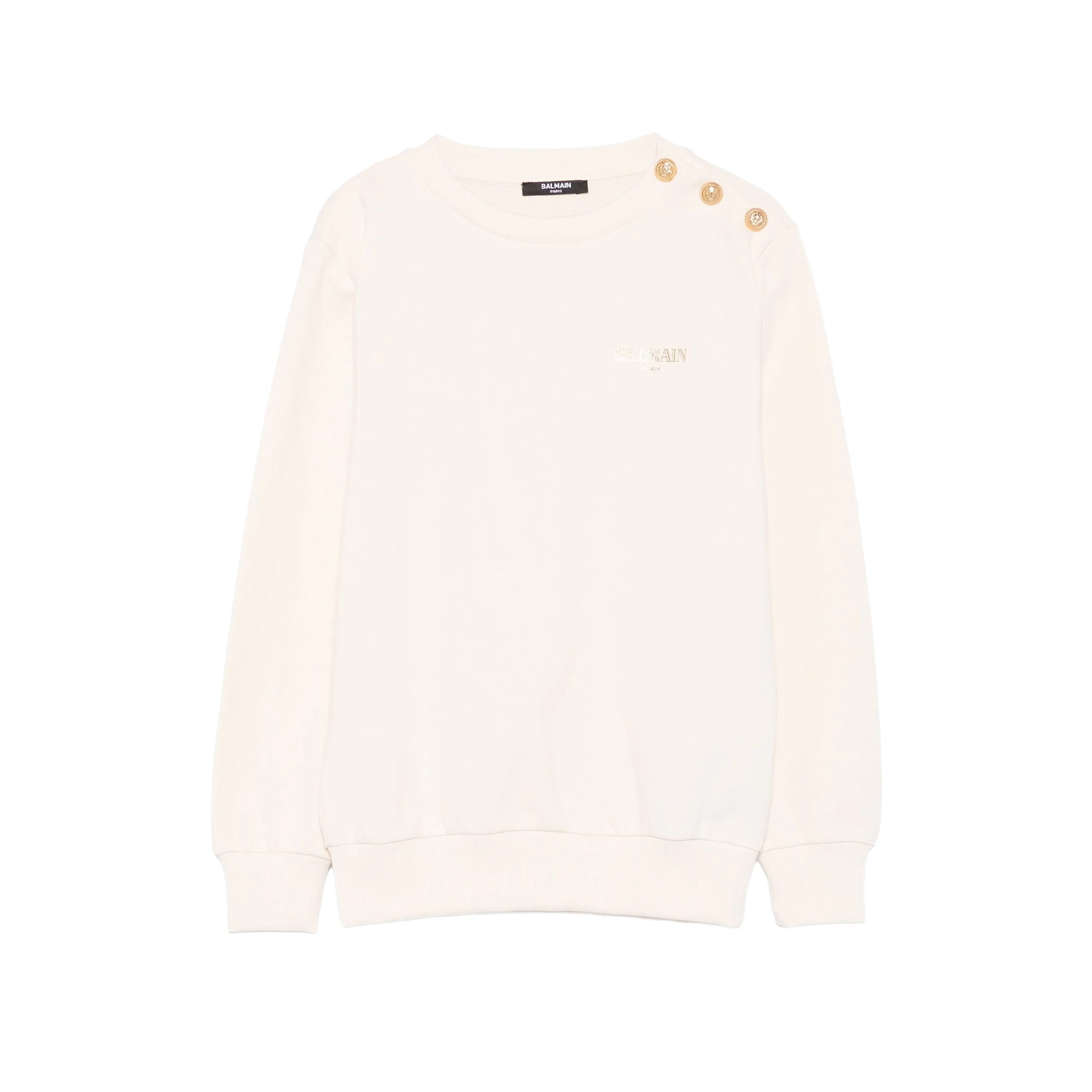 BALMAIN Felpa beige girocollo con dettagli oro bambini