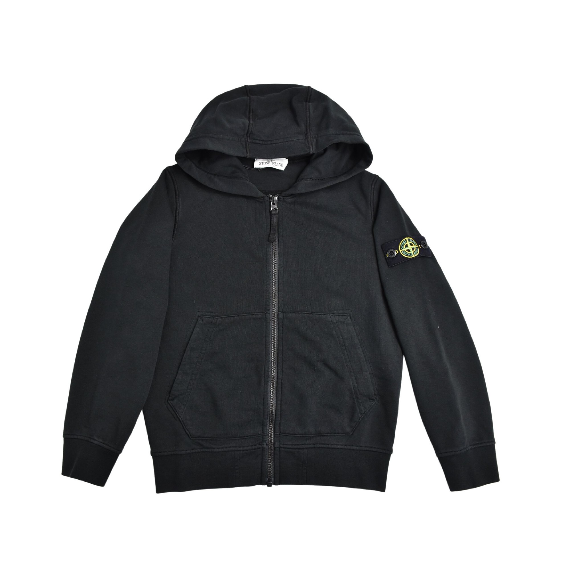 STONE ISLAND Felpa zip con cappuccio nera bambino