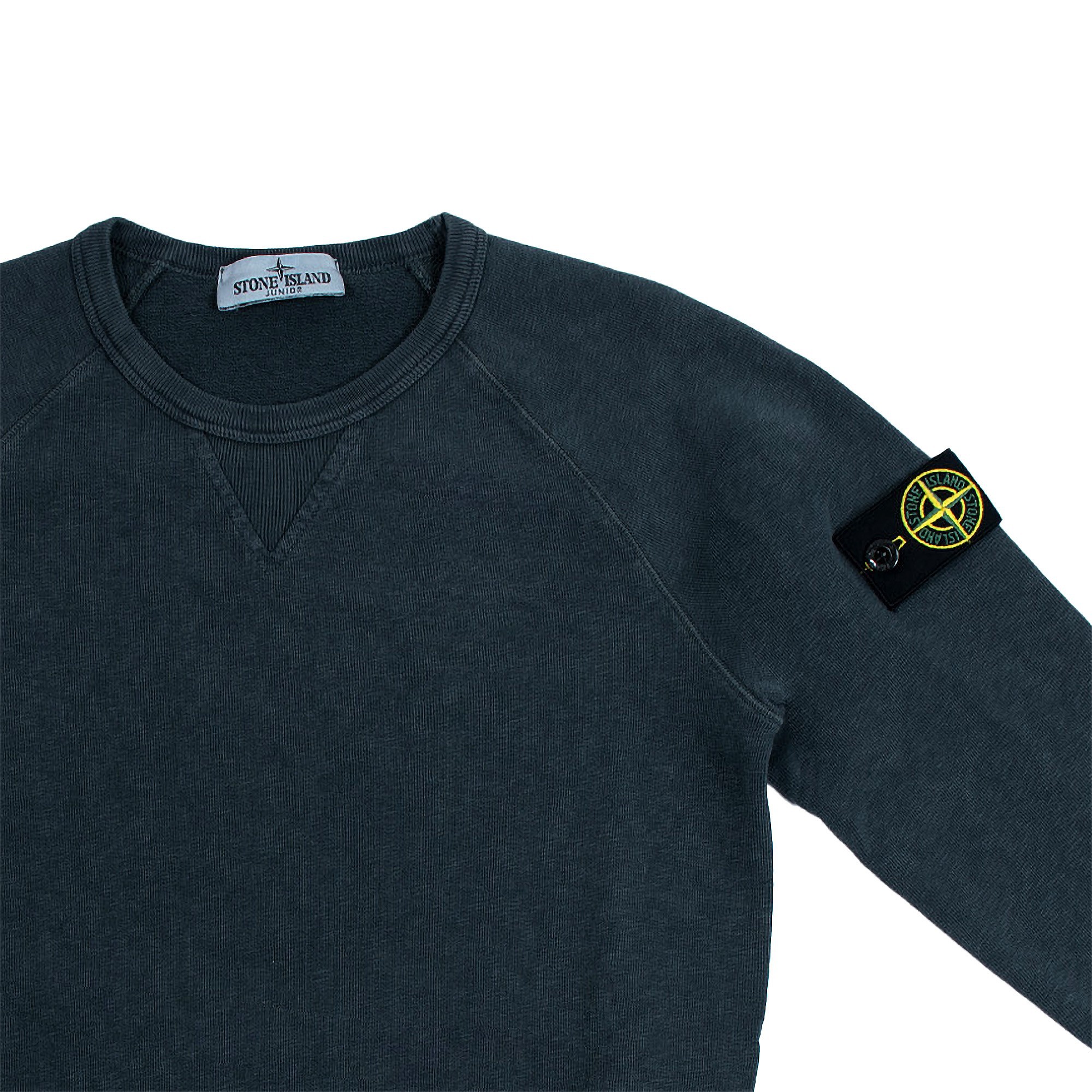 Felpa girocollo in cotone tinta in capo fit regolare, scollo a costine. Badge Stone Island sulla manica sinistra. Cuciture overlock. Dietro, sotto lo scollo, lunetta con fodera interna. Polsi e fondo a costine.