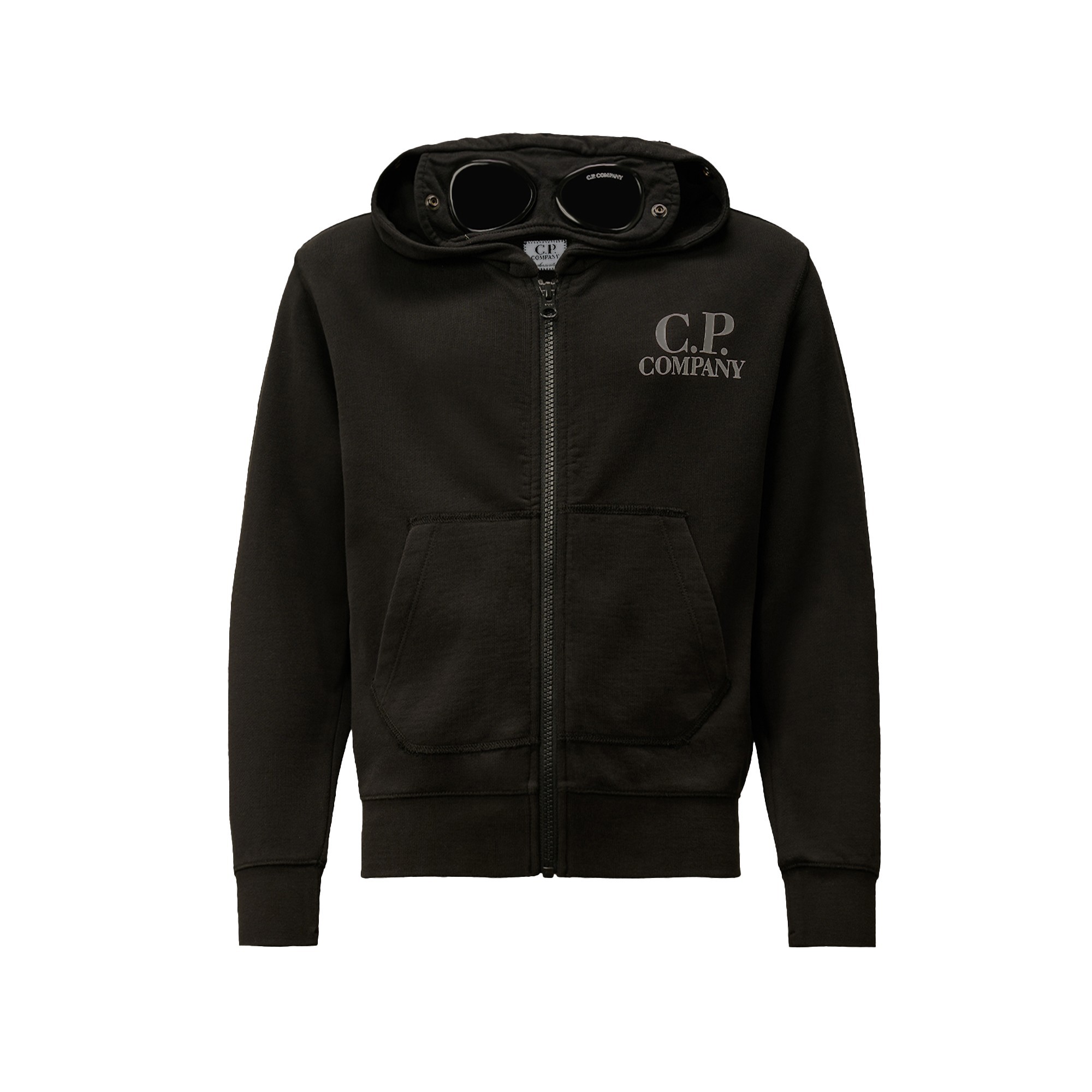 C.P. COMPANY Felpa nera full-zip con cappuccio Lens bambino