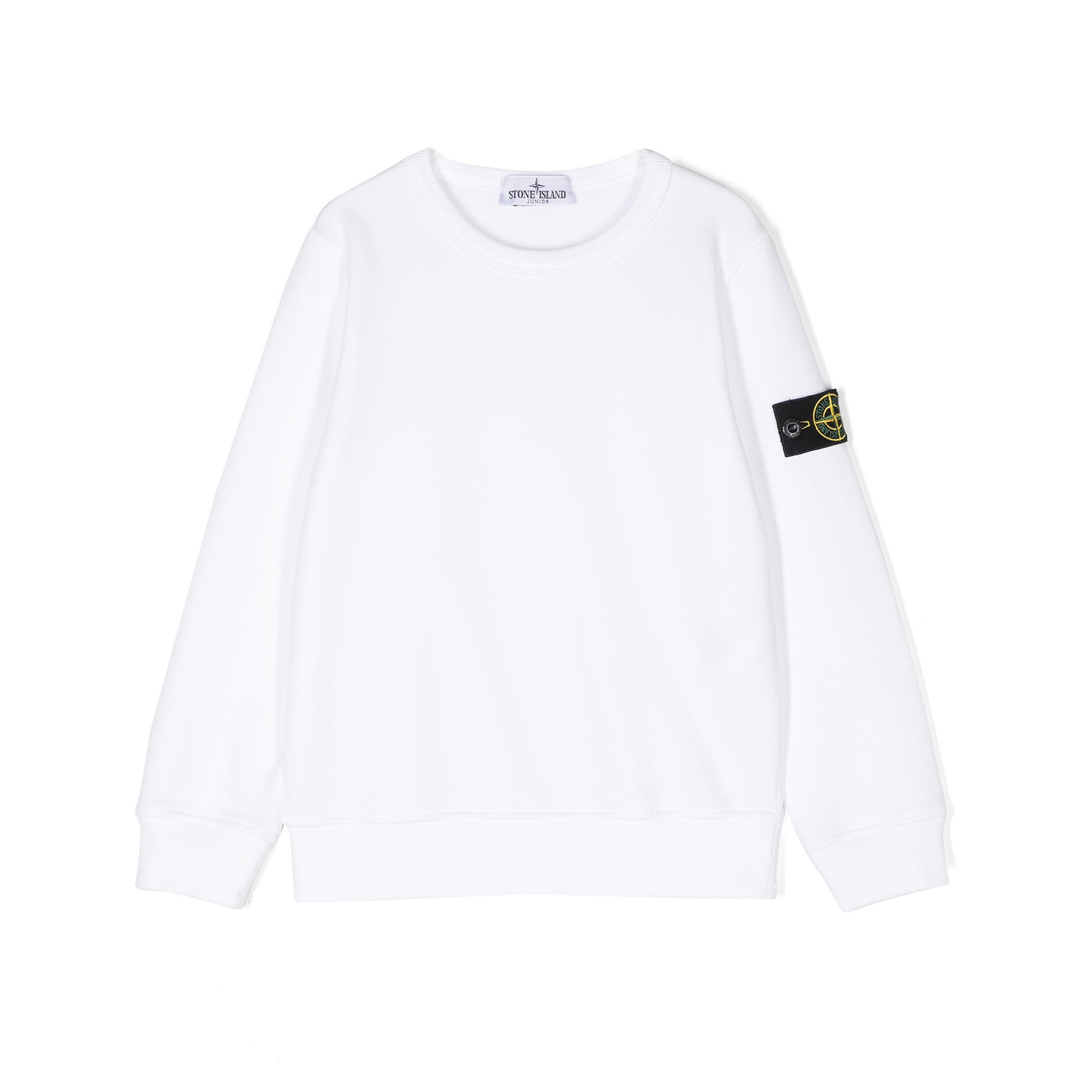 STONE ISLAND Felpa bianca girocollo dettaglio Compass bambini