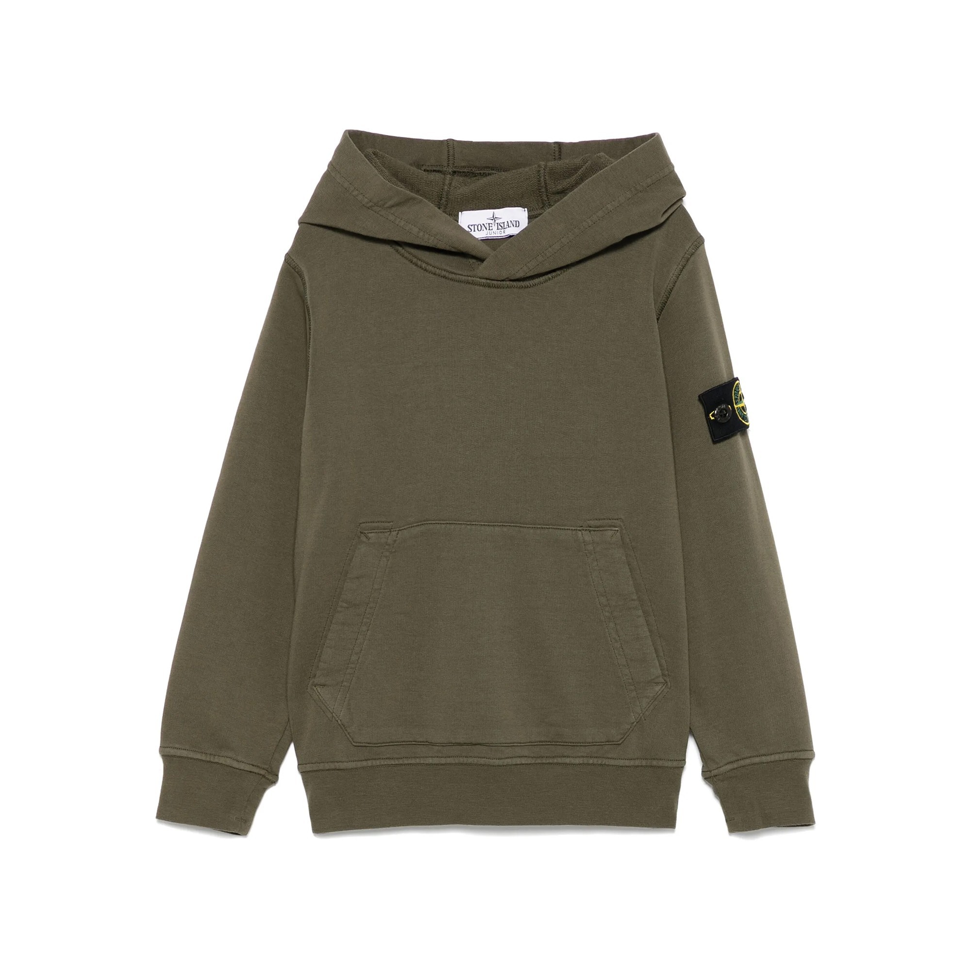 STONE ISLAND Felpa verde con cappuccio e applicazione bambini