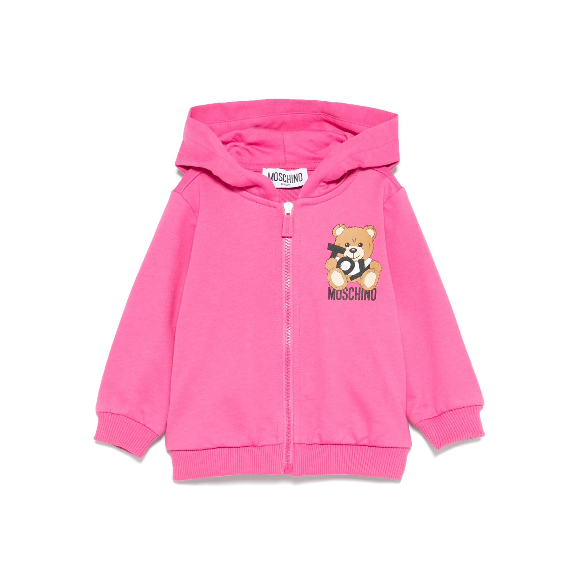 MOSCHINO Felpa fucsia full-zip con cappuccio neonata