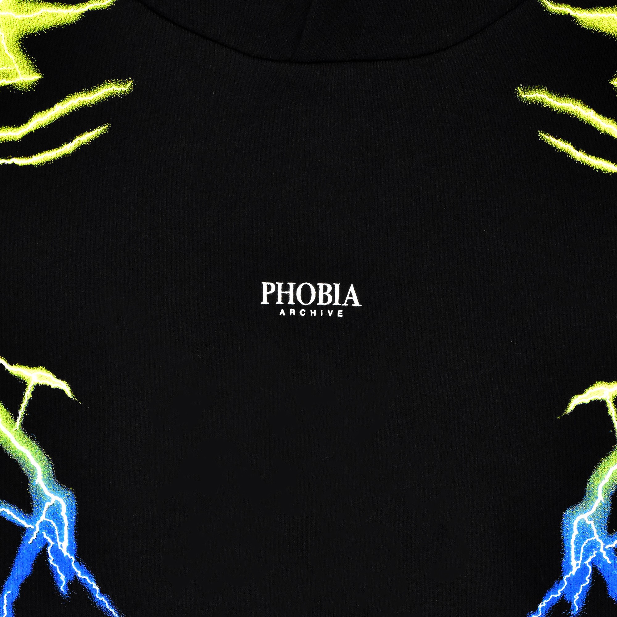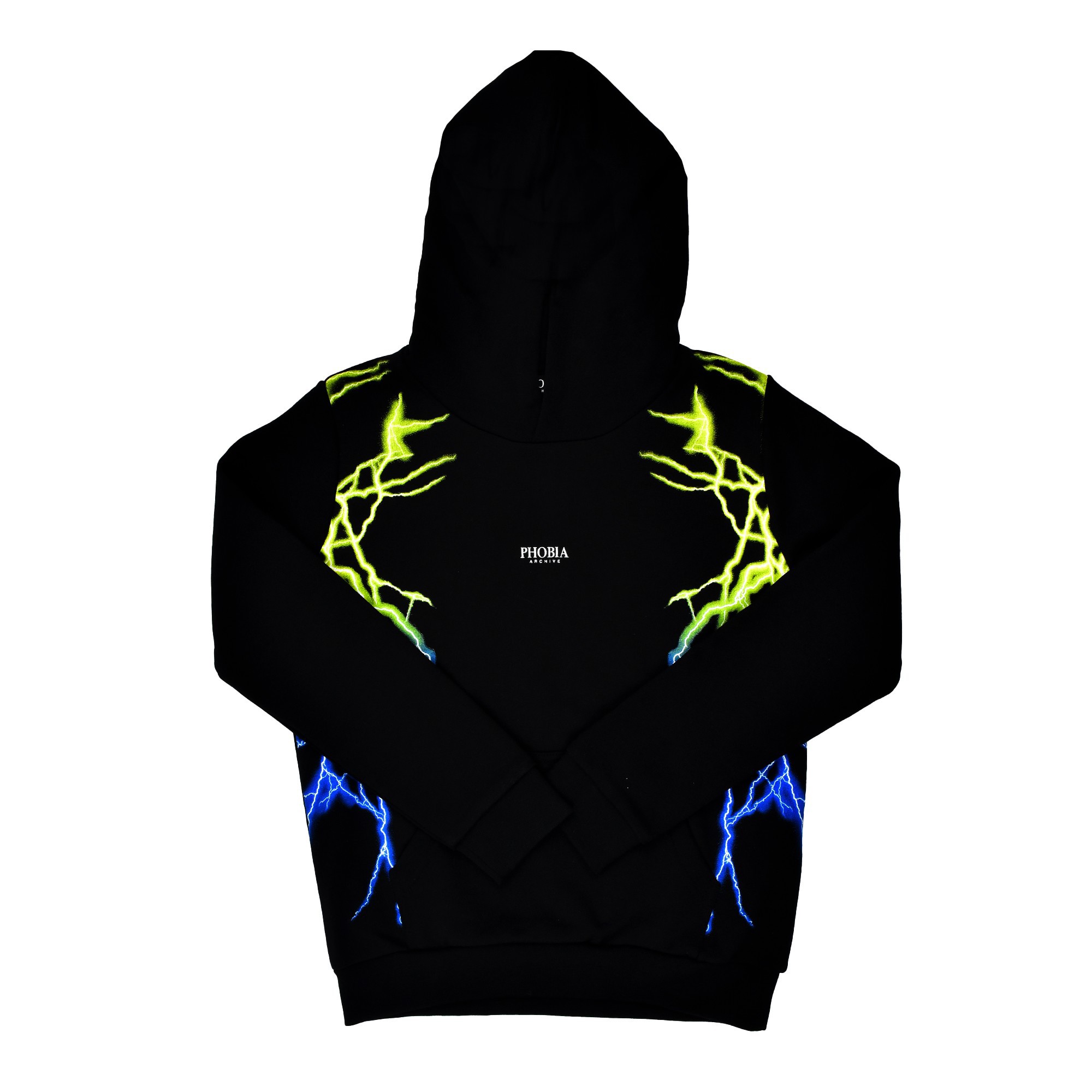 PHOBIA Felpa nera con cappuccio e fulmini bicolore bambini