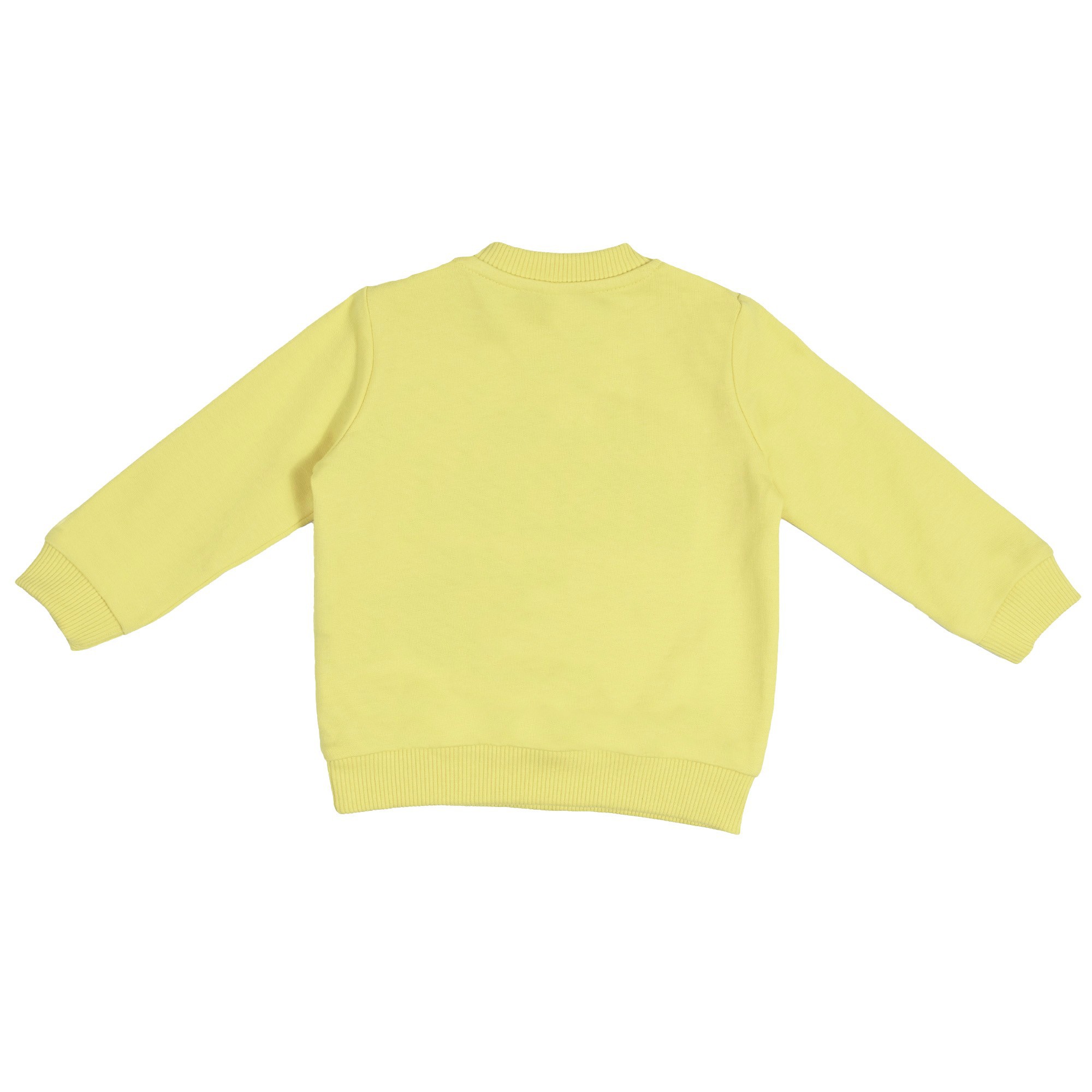 Felpa di colore giallo di Stella McCartney Kids in cotone organico con manica lunga modello girocollo con apertura tramite 2 bottoni a pressione stampa decorativa frontale,tessuto a costine elasticizzate sui polsini e in vita etichetta iconica laterale