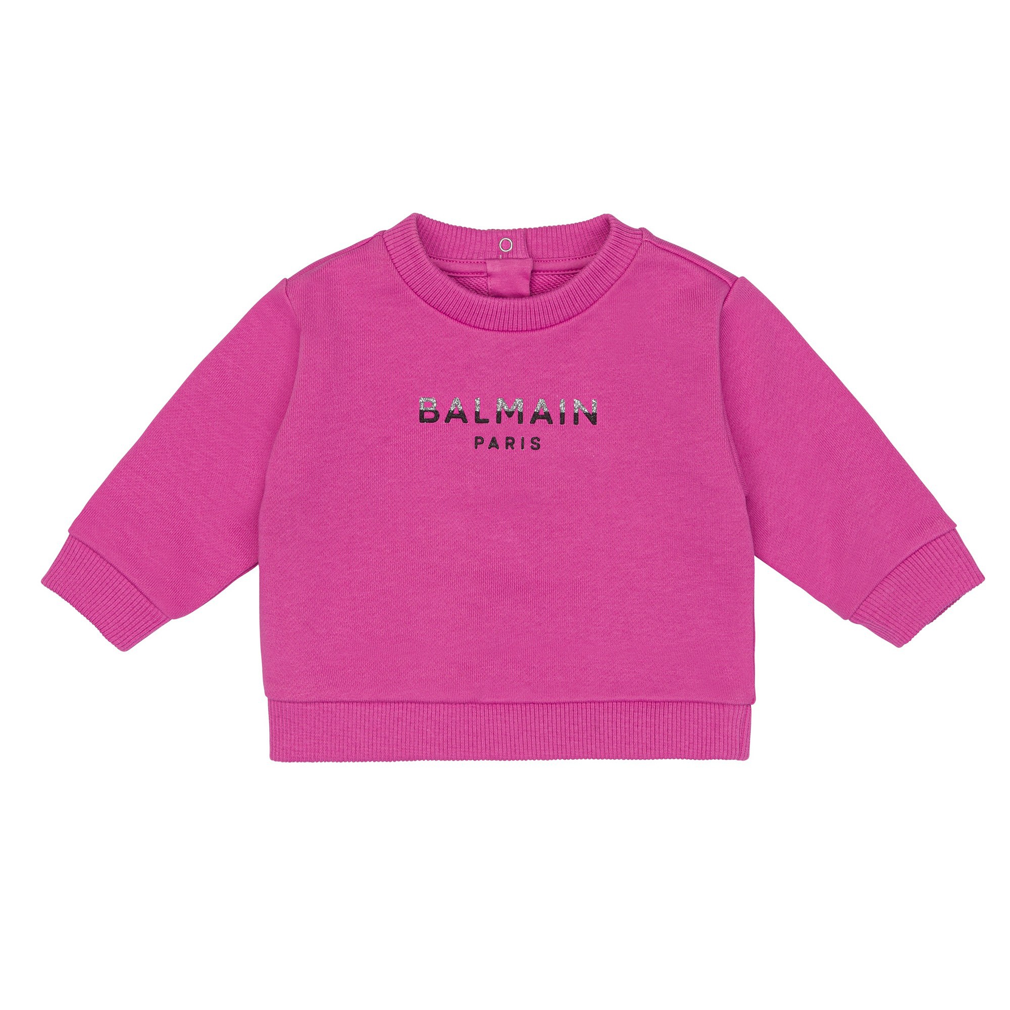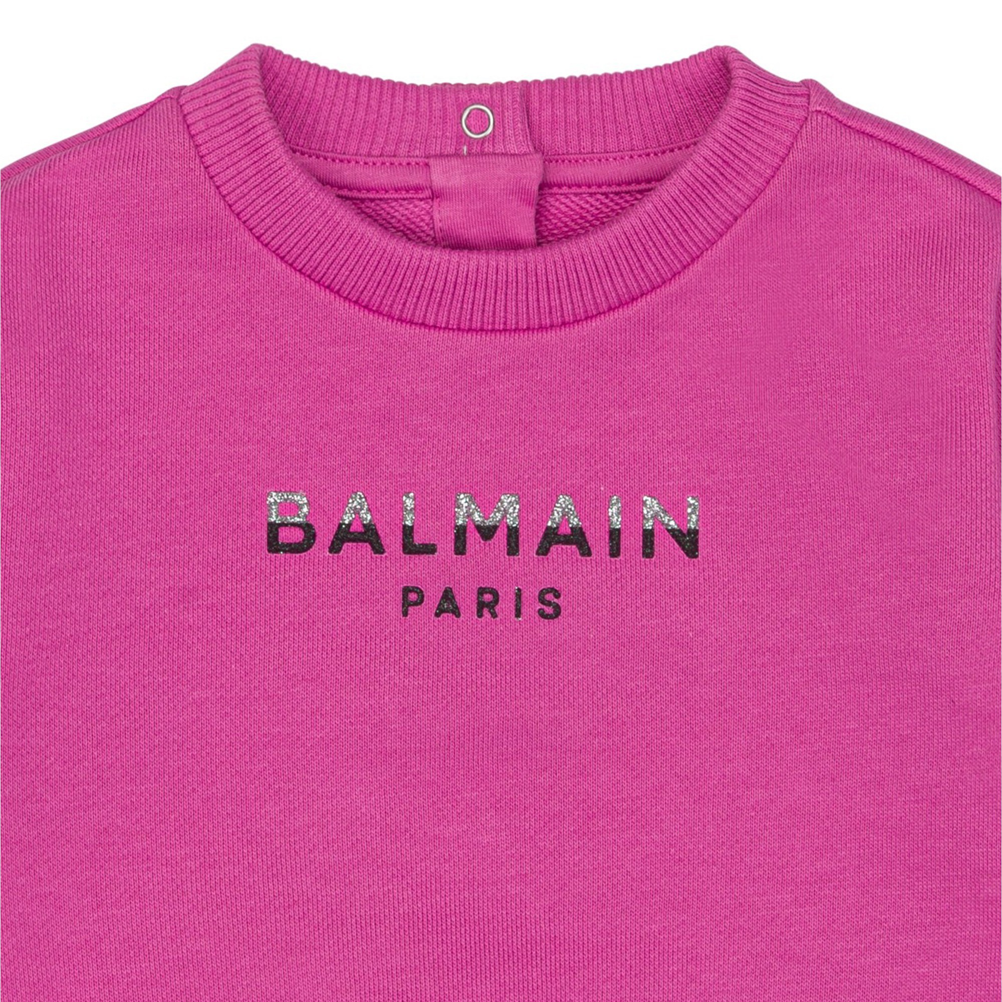 BALMAIN Felpa con logo goffrato rosa per neonata