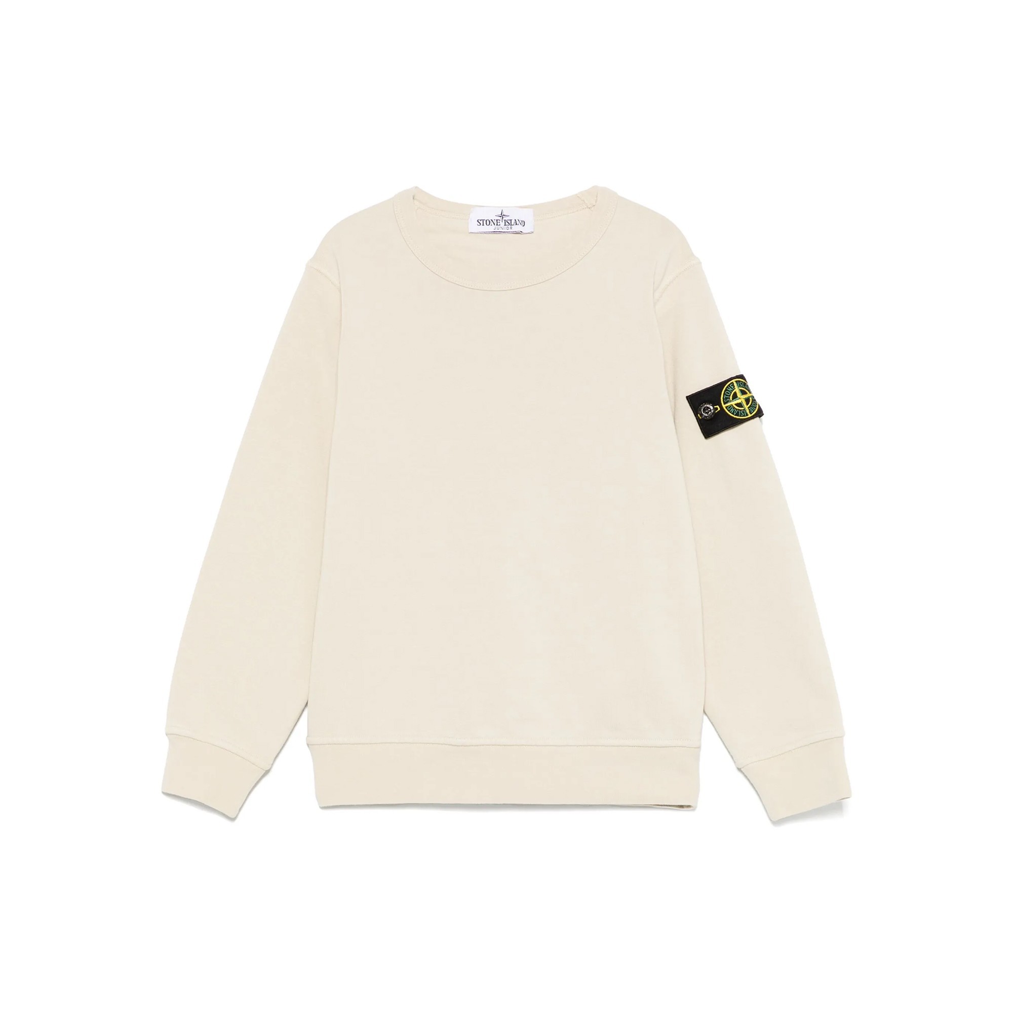 STONE ISLAND Felpa avorio girocollo con patch bambini