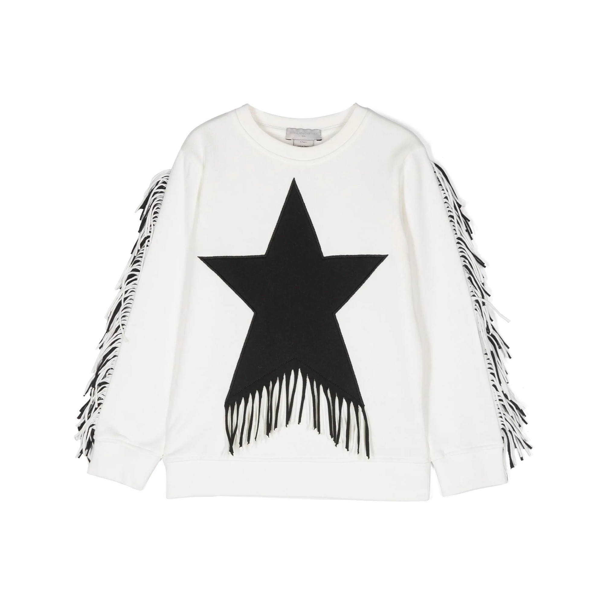 STELLA McCARTNEY Felpa bianca con stella e frange bambini