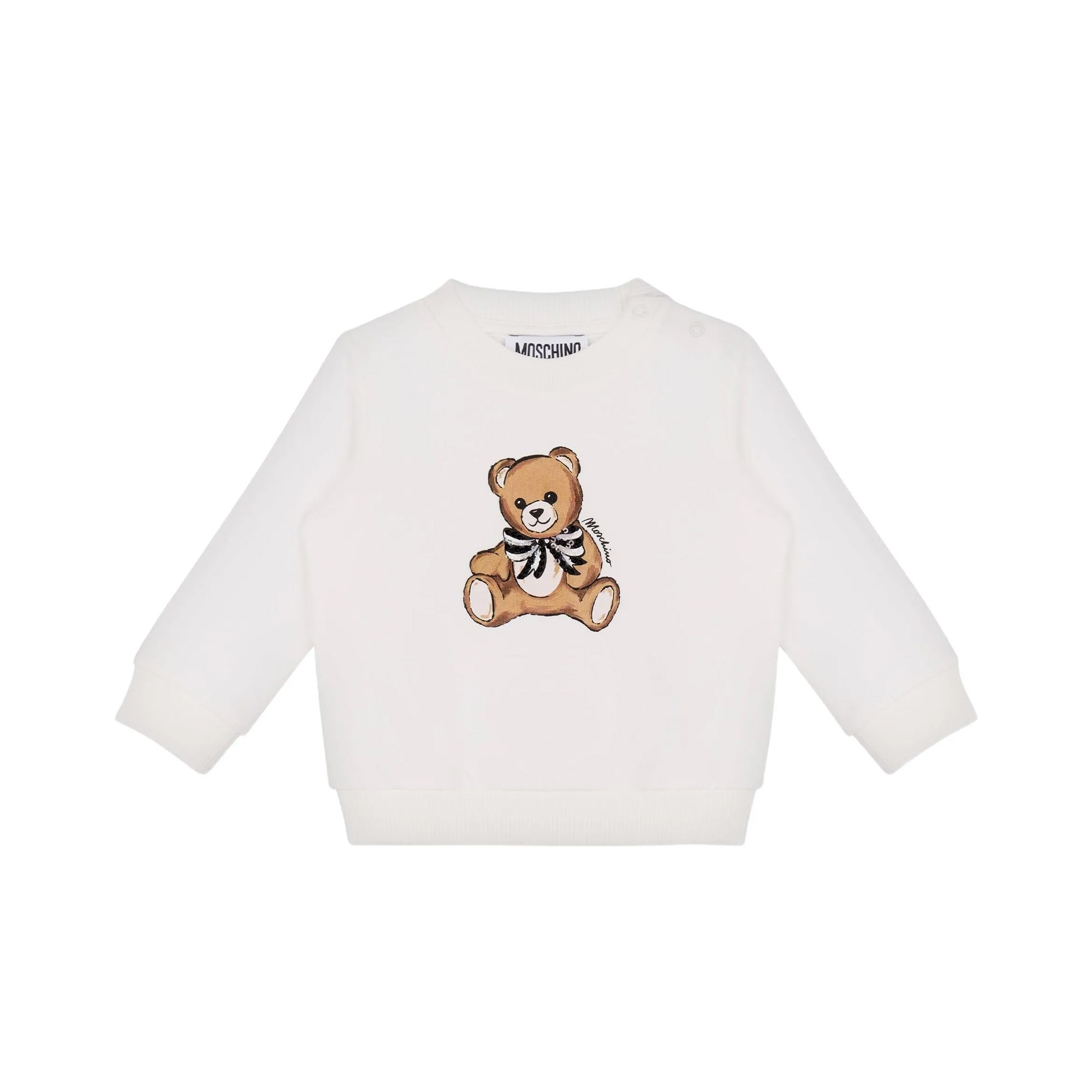 MOSCHINO Felpa bianca girocollo con Moschino Bear neonata