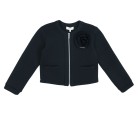 Giacca in tessuto elasticizzato apertura con zip due finte tasche d'avanti con un applicazione a forma di fiore su cui e cucito il logo