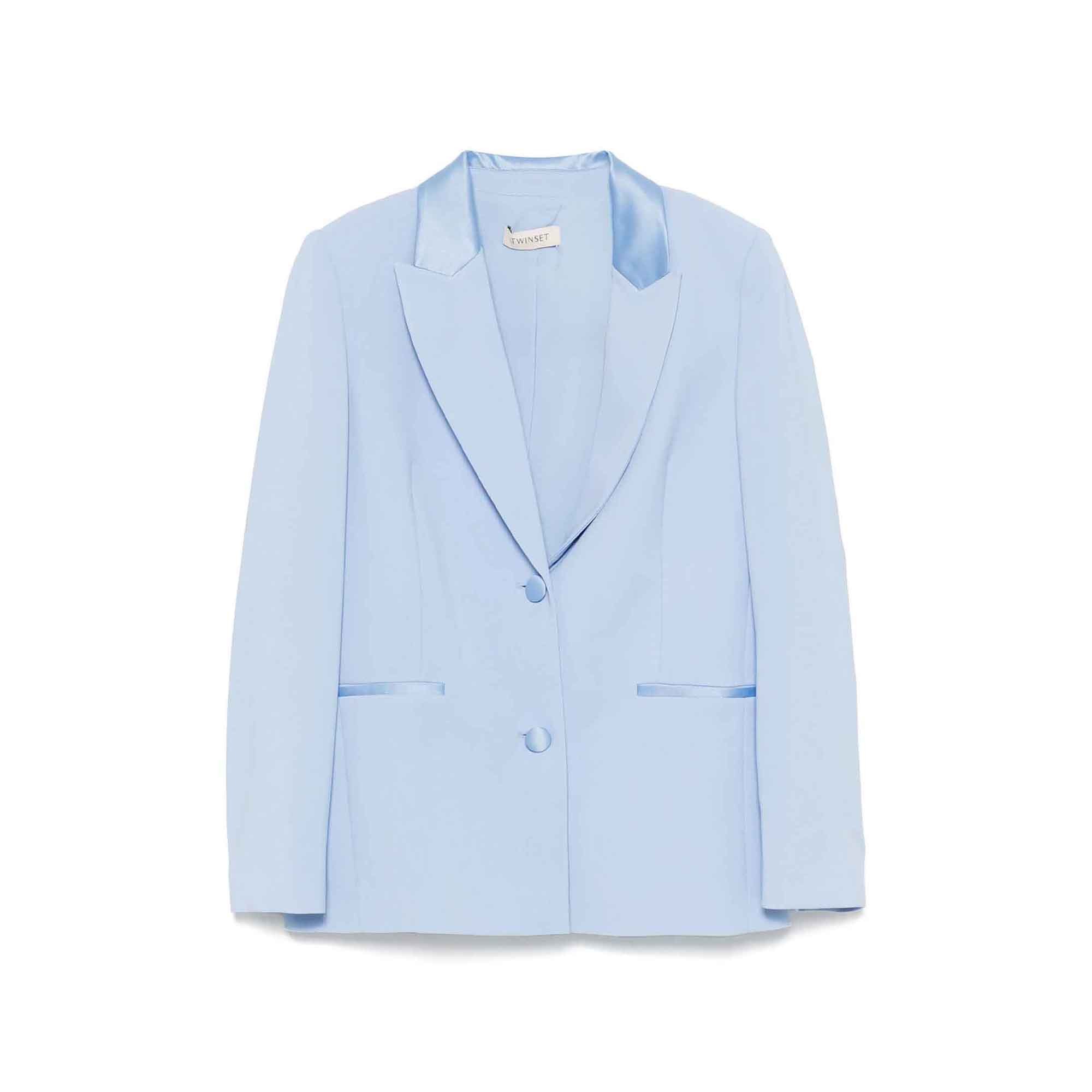 TWIN-SET Blazer celeste con orlo satinato bambina