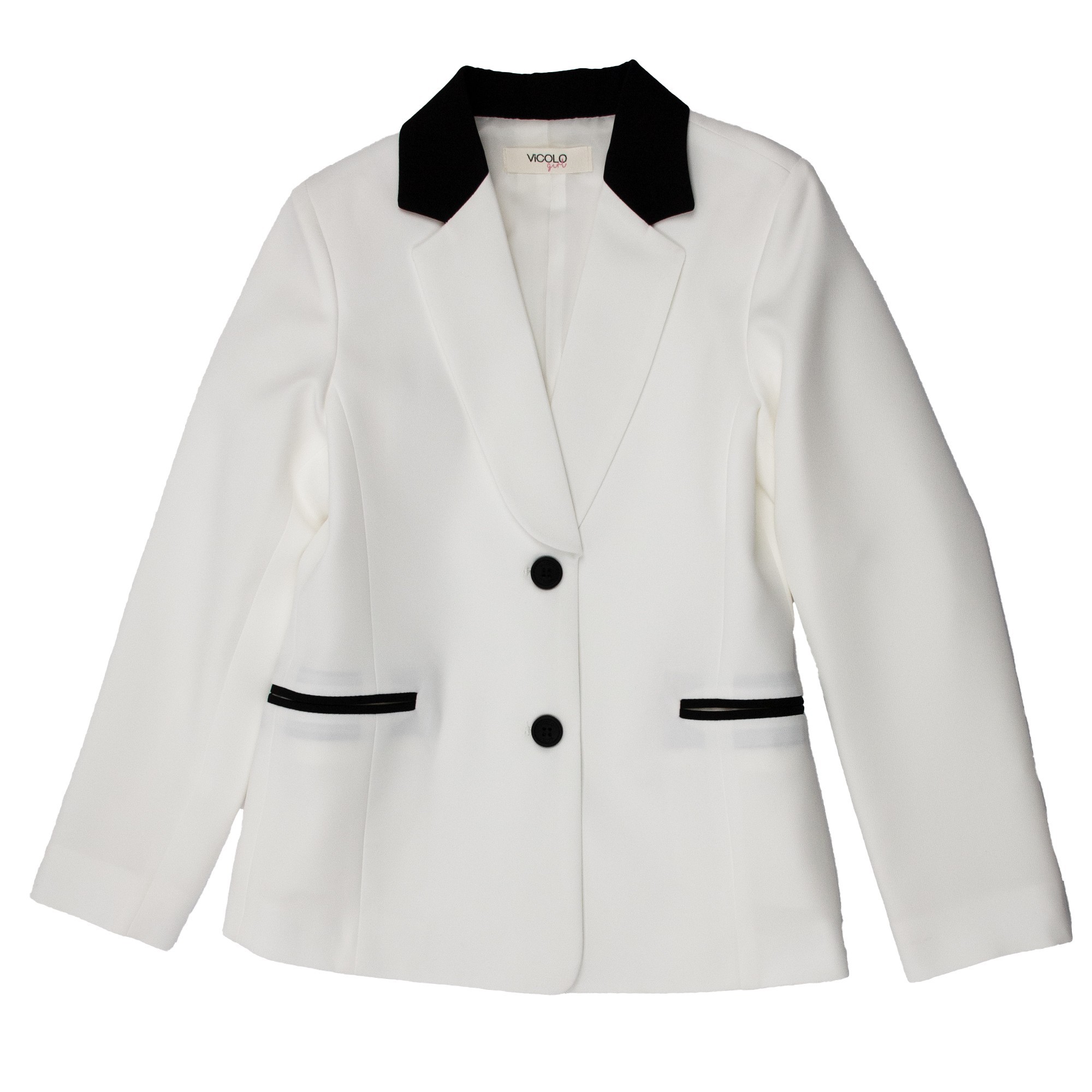Blazer color panna due tasche frontale con dettaglio in contrasto nero laterale