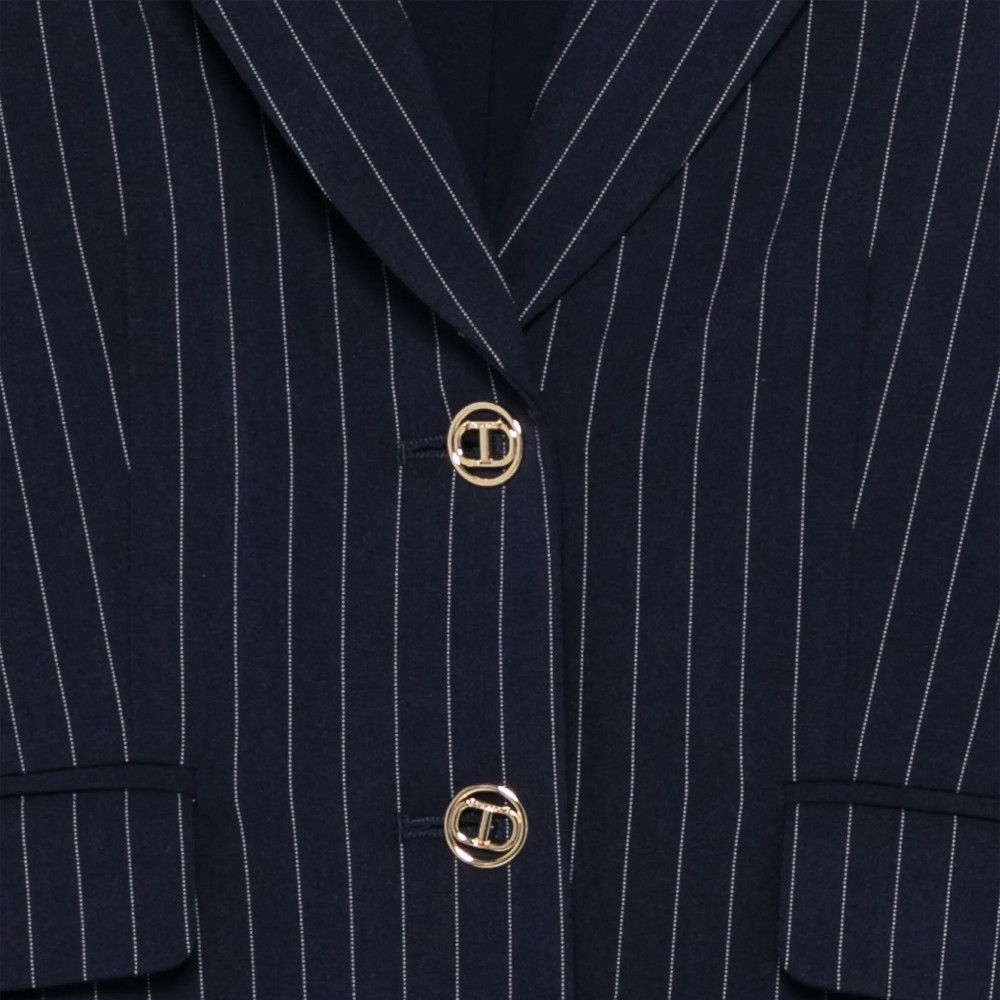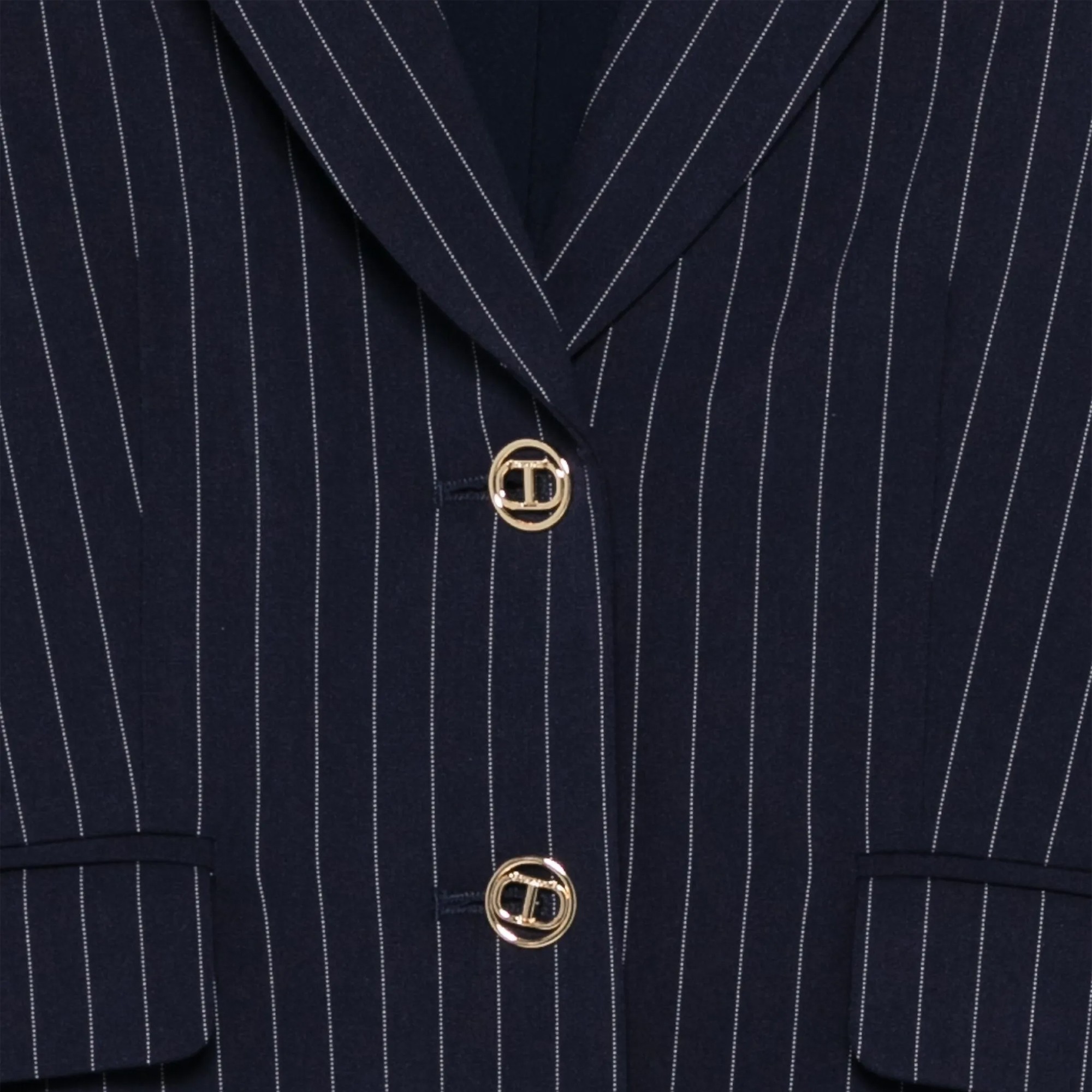 TWIN-SET Blazer navy gessato con cappuccio bambina