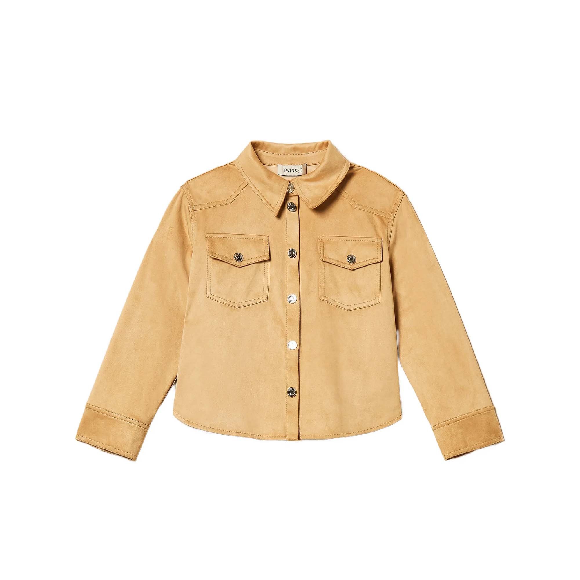 Colletto a camicia, chiusura con bottoni a pressione logati,
