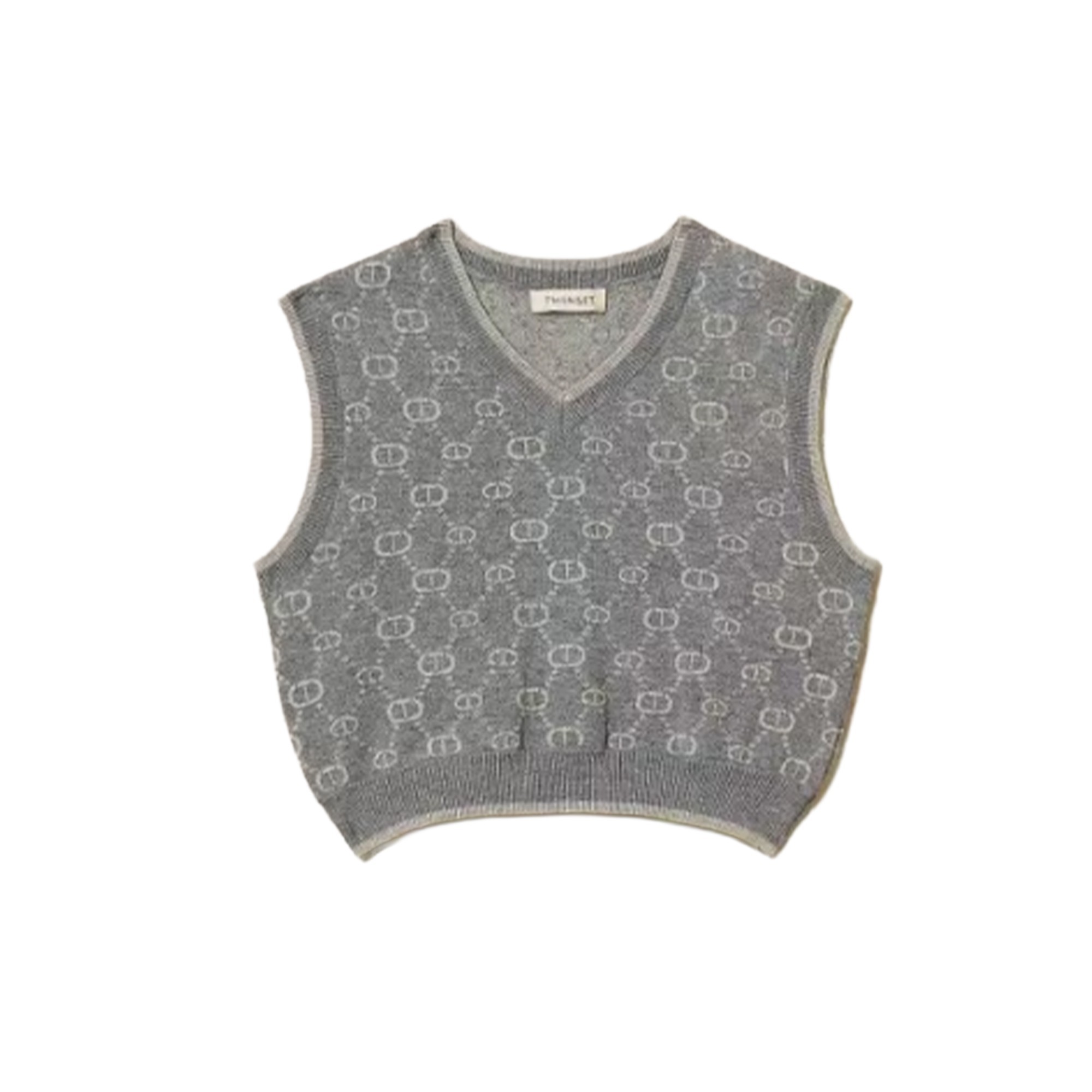 TWIN-SET Gilet corto grigio con logo all-over bambina