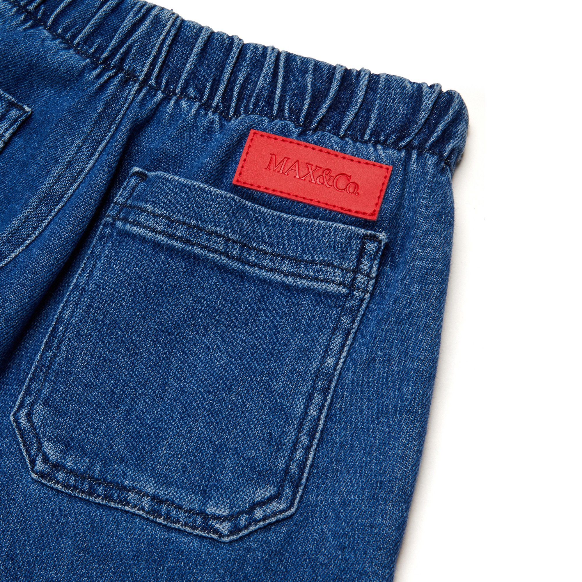 tasche posteriori, patch logo rossa sul retro, wide leg.