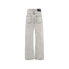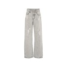 Denim grigio con baffature, passanti per cintura