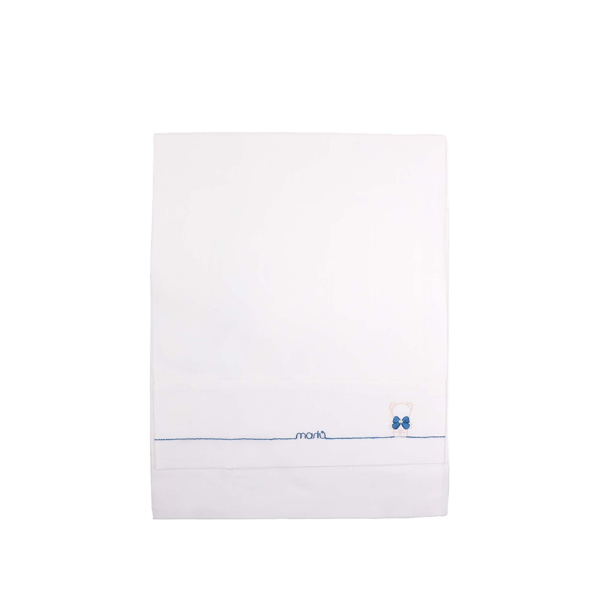 MARLU' Set lenzuolino bianco ricami blu neonato