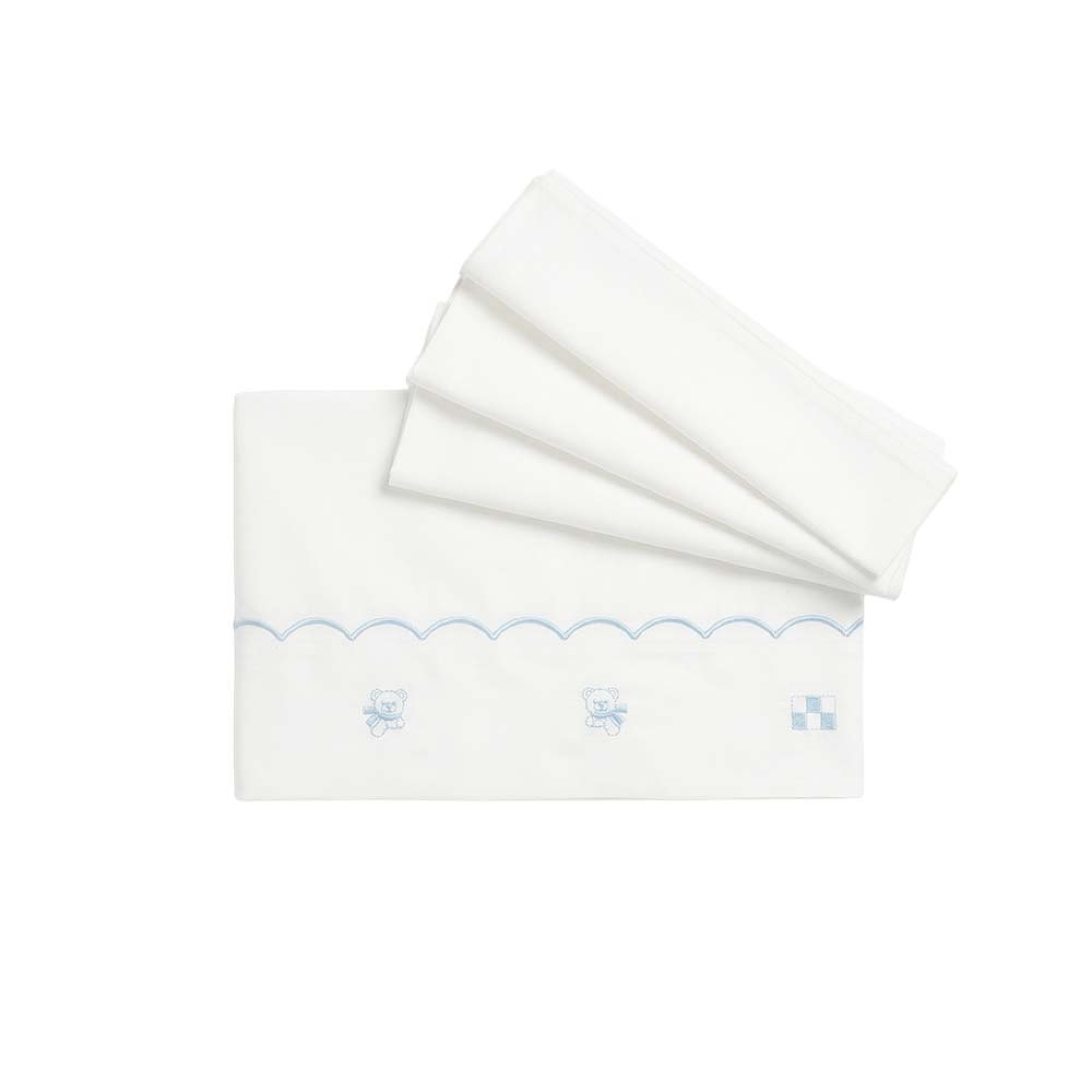 MARLU' Set lenzuolino bianco con ricami celesti neonato