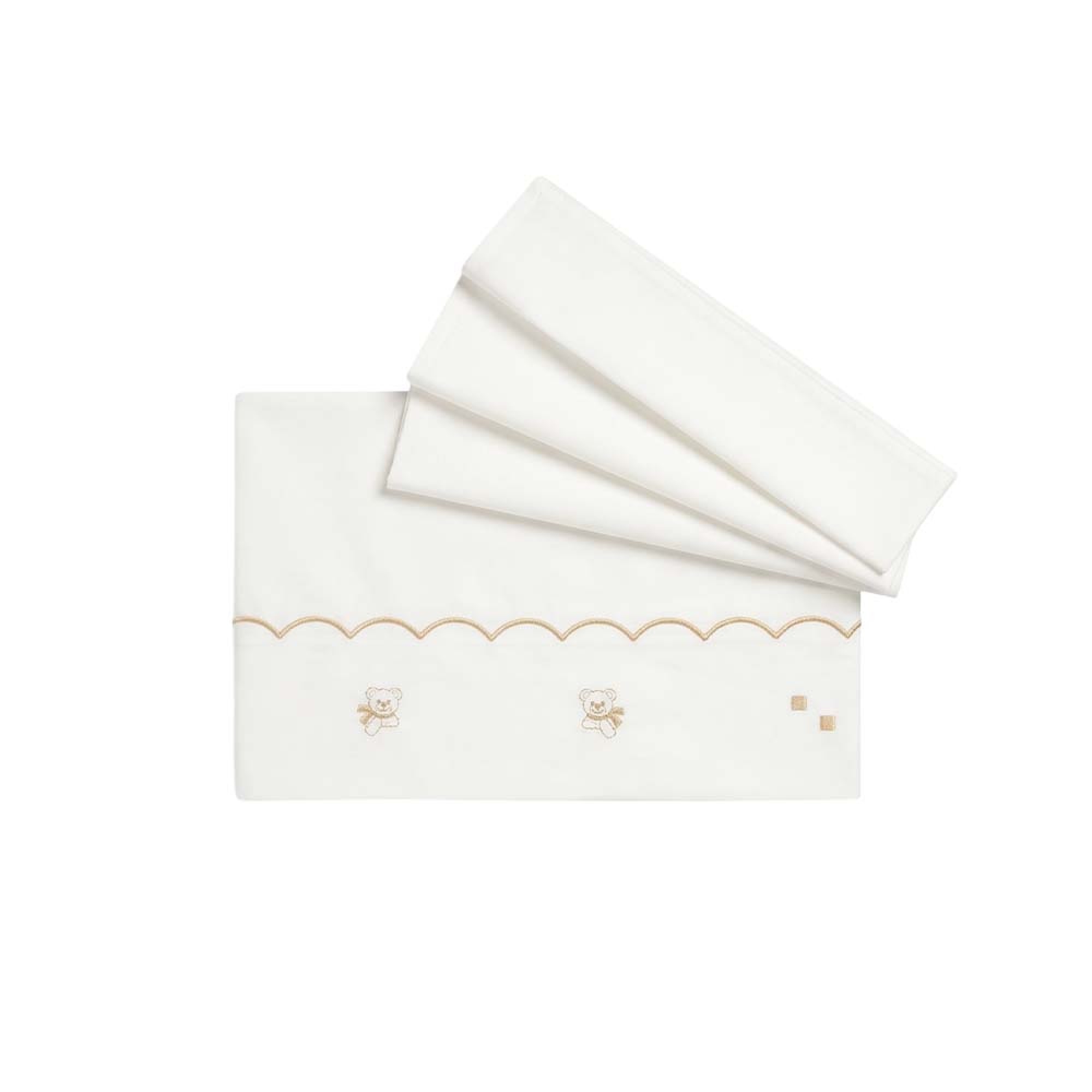 MARLU' Set lenzuolino bianco con ricami sabbia neonato