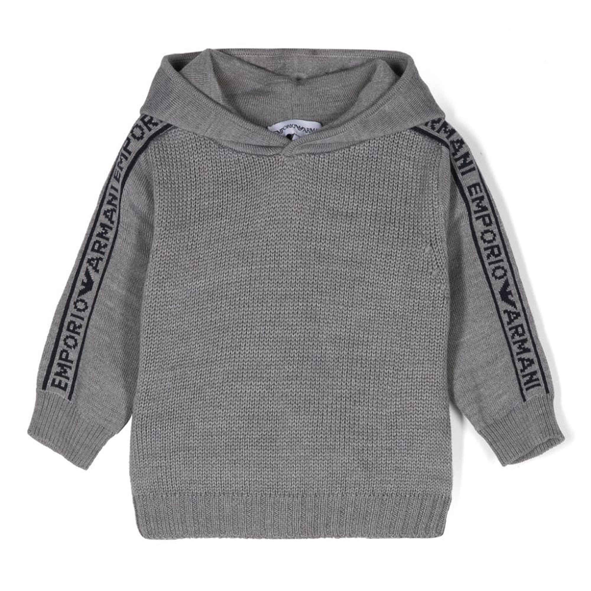 EMPORIO ARMANI Felpa grigia con cappuccio con logo neonato