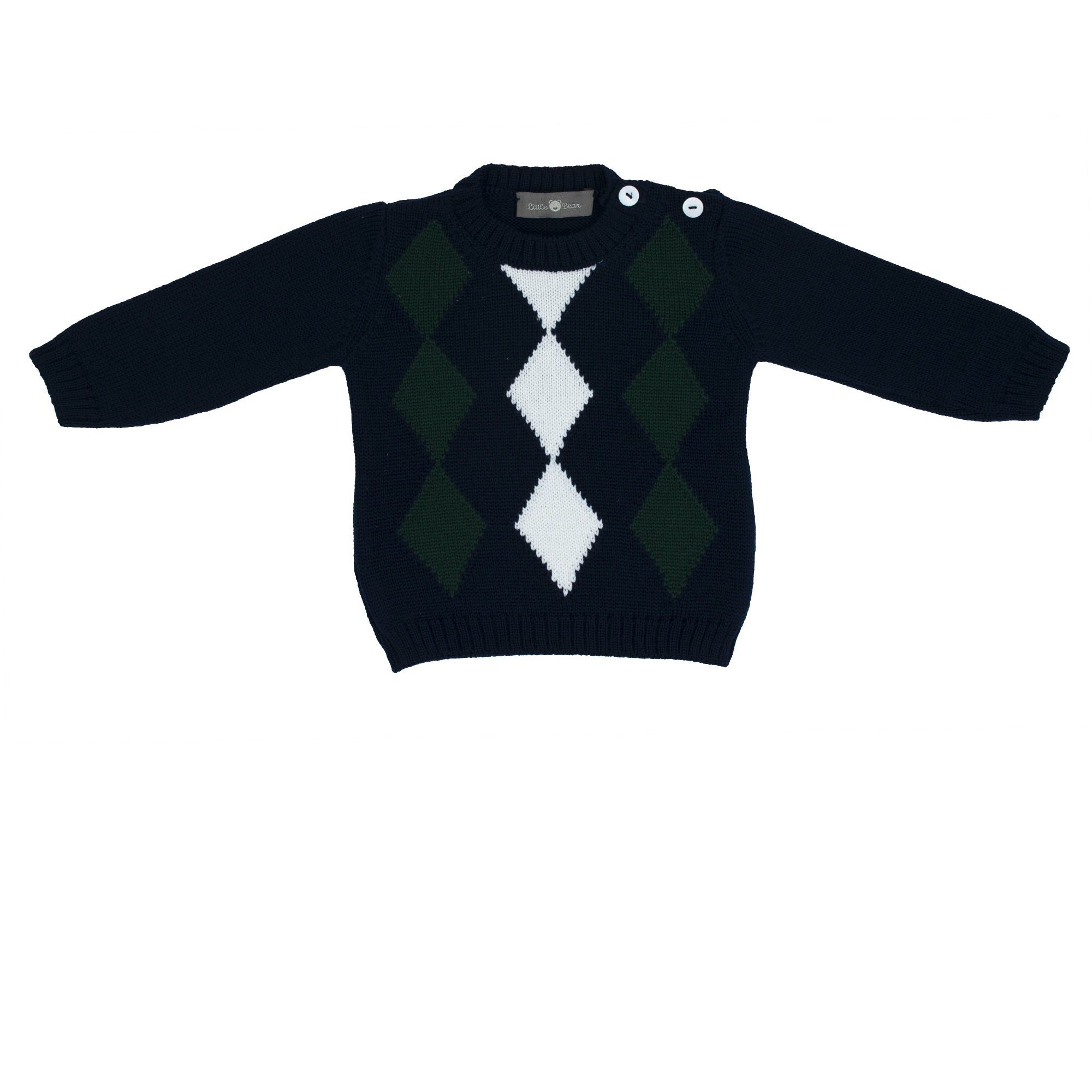 LITTLE BEAR Maglione a rombi blu verde panna neonato