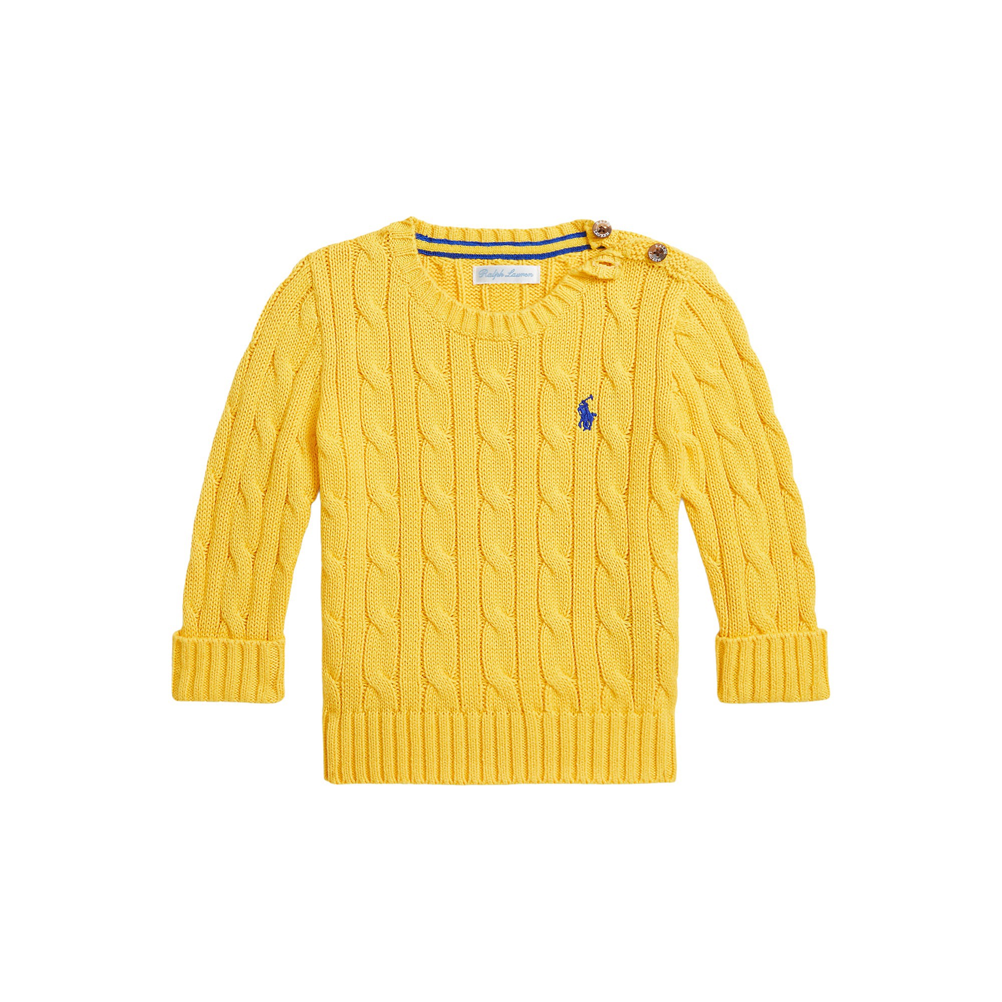 RALPH LAUREN Maglia gialla a trecce in cotone neonati