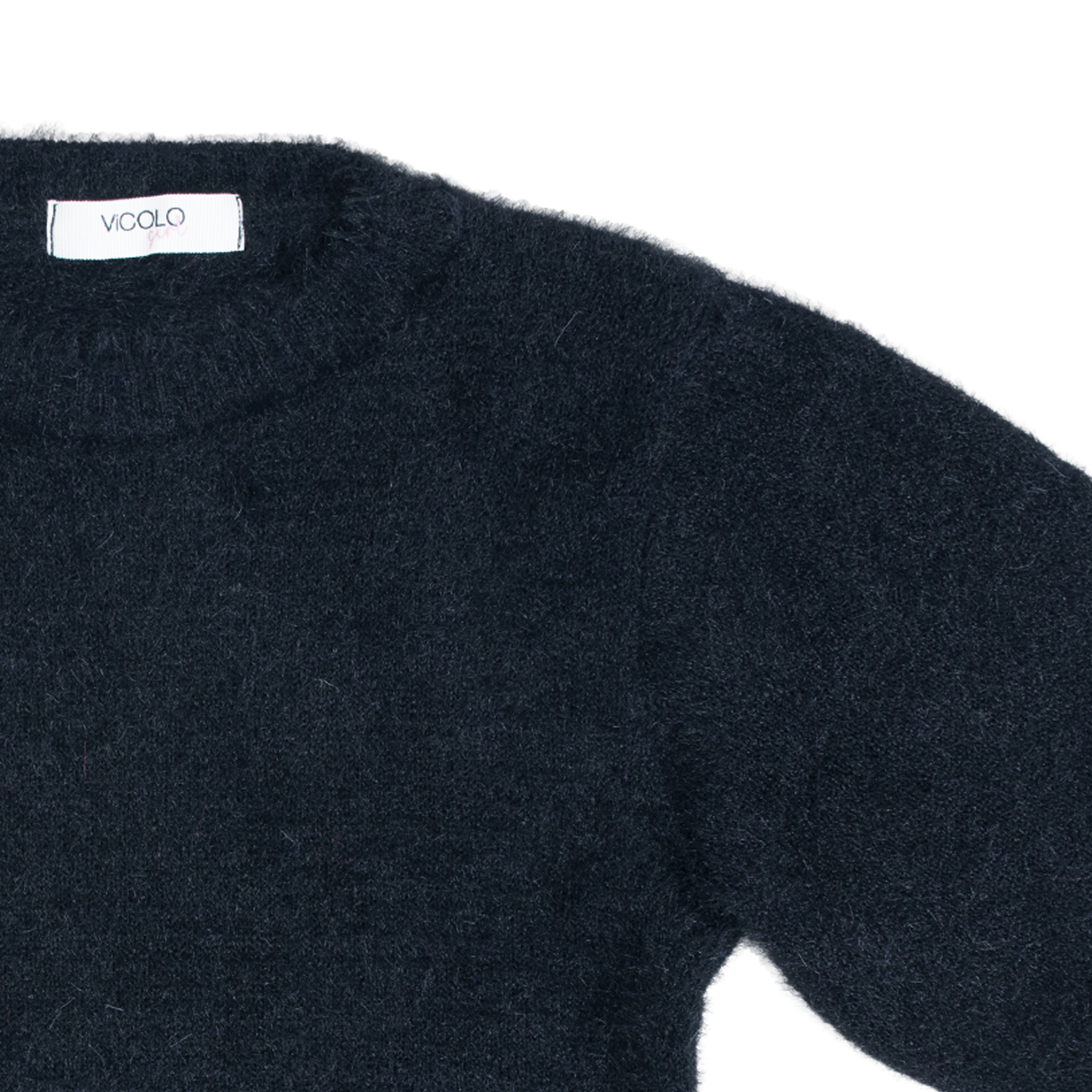 Maglia in tessuto di polyamide effetto peloso morbidissimo modello girocollo manica corta a palloncino vestibilità cropped