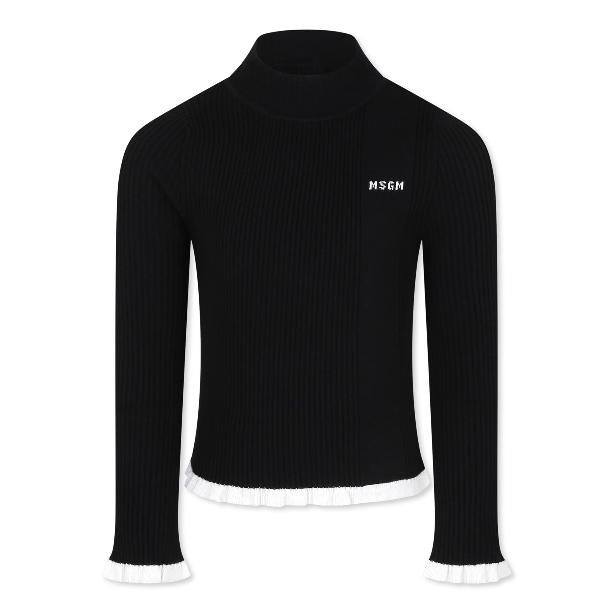 MSGM Maglione nero con dettagli bianchi a coste bambina