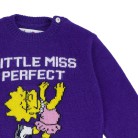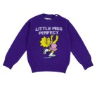 Maglione misto cashmere girocollo a costine maniche lunghe la sinistra ha il logo SaintBarth ricamato tinta su tinta polsini e vita in maglia a costine di fronte lisa simpson con la scritta Little miss perfect