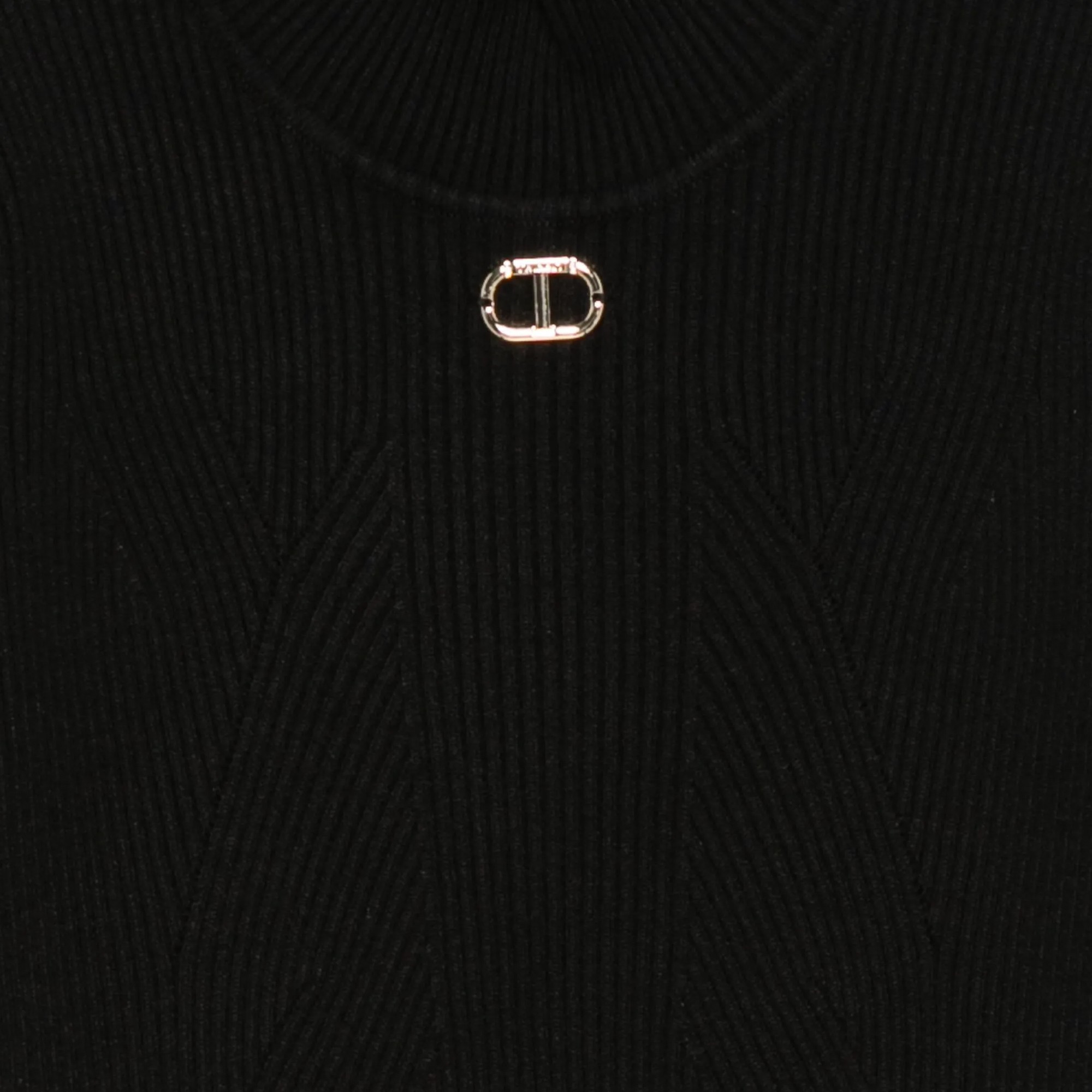 TWIN-SET Lupetto nero in maglia a costine bambina