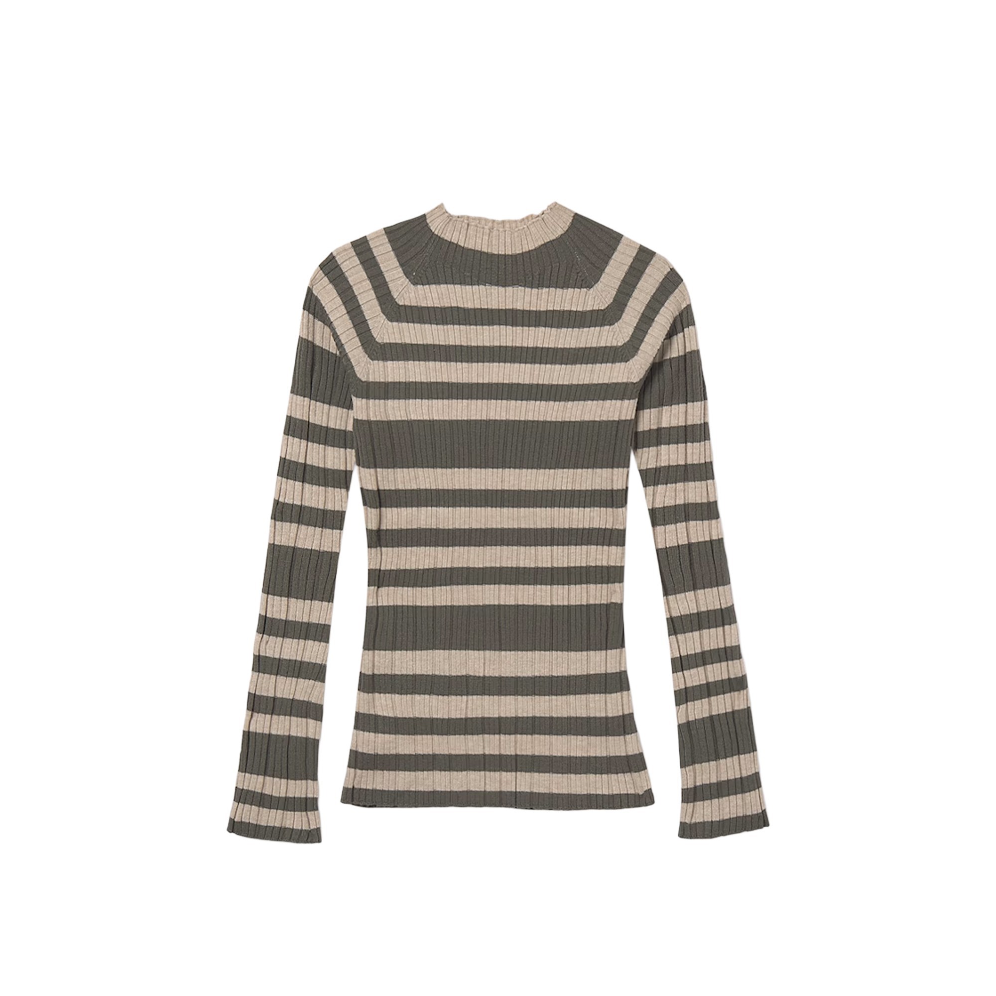 MAYORAL Lupetto verde e panna a righe a coste bambina