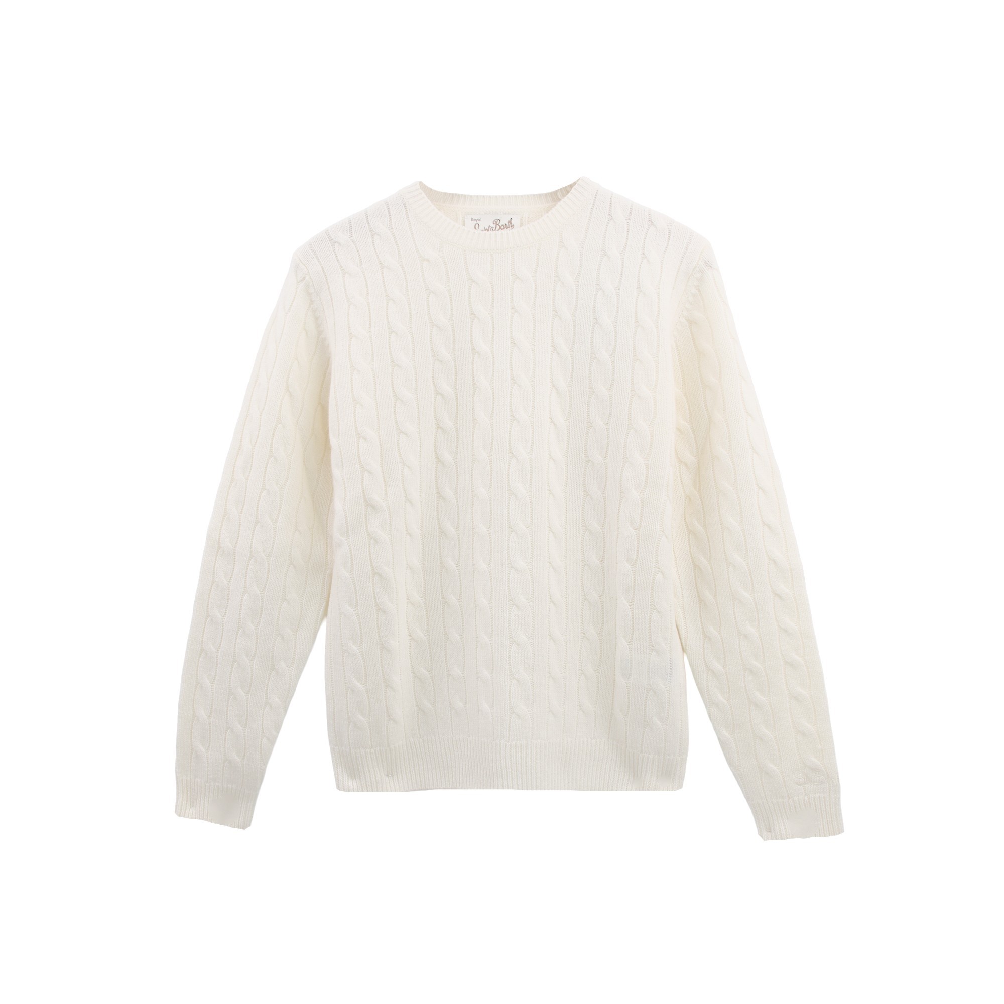 SAINT BARTH Maglione bianco in lana a trecce bambina