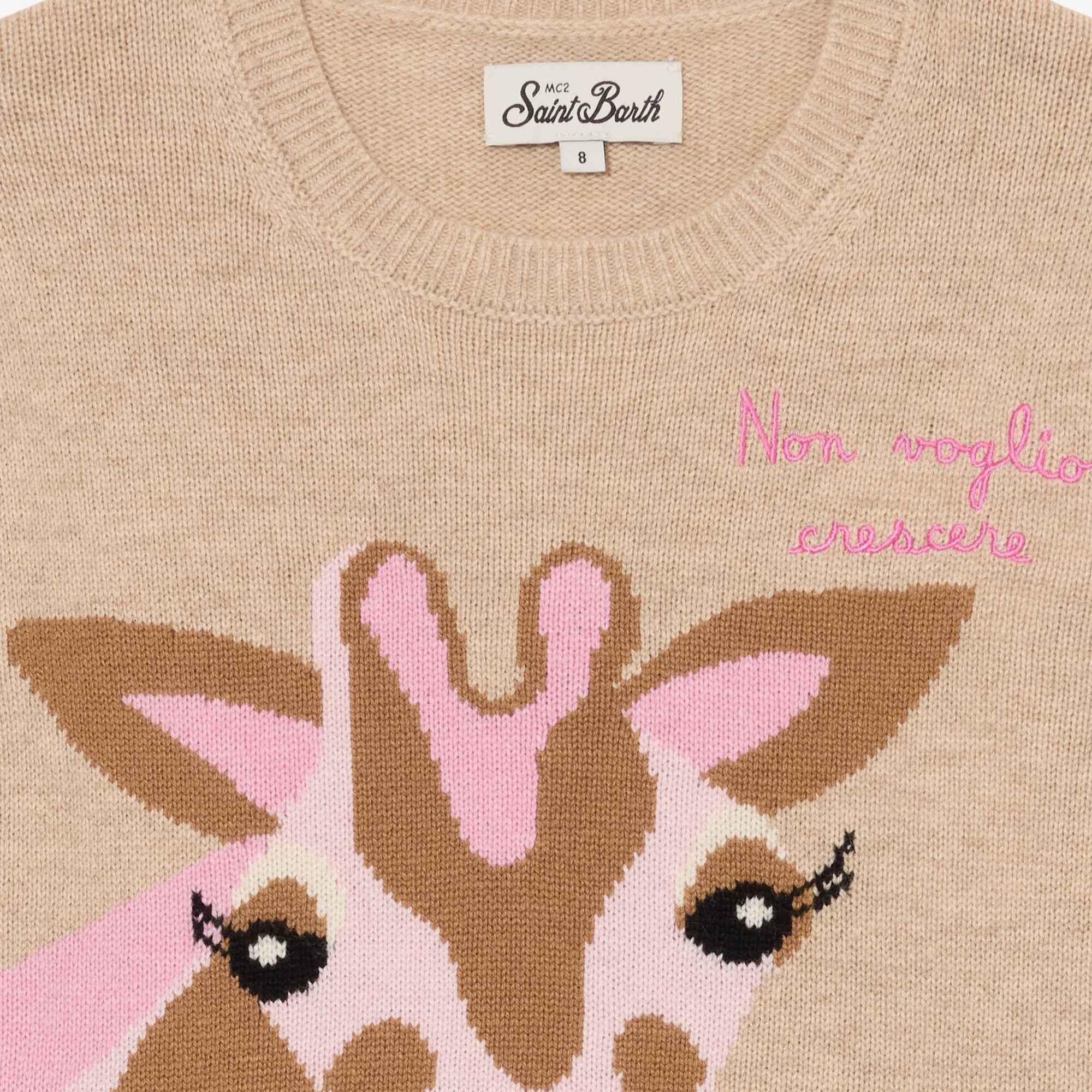 SAINT BARTH Maglione beige "non voglio crescere" giraffa bambina