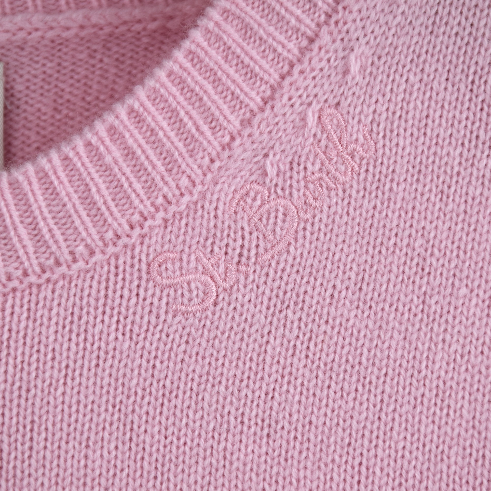 SAINT BARTH Maglione rosa cipria in lana con logo bambina