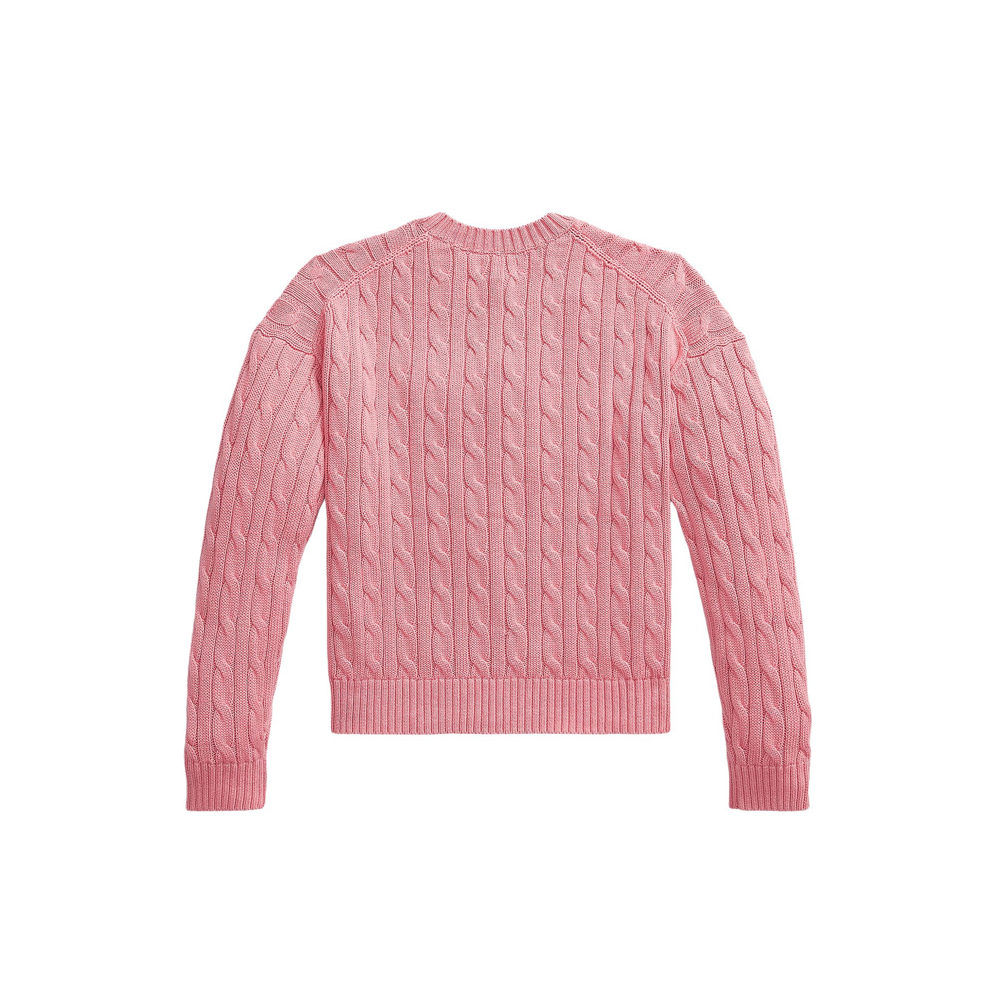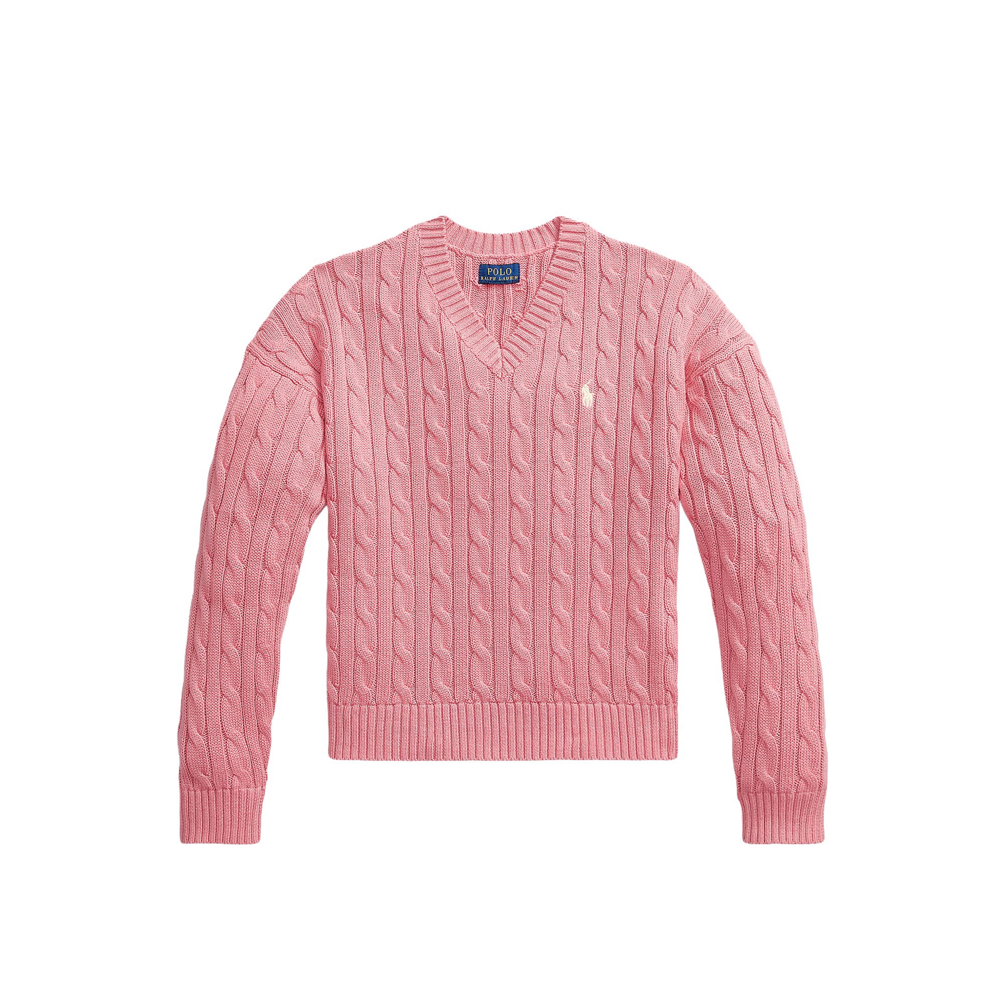 RALPH LAUREN Maglia rosa a trecce con scollo a V bambina