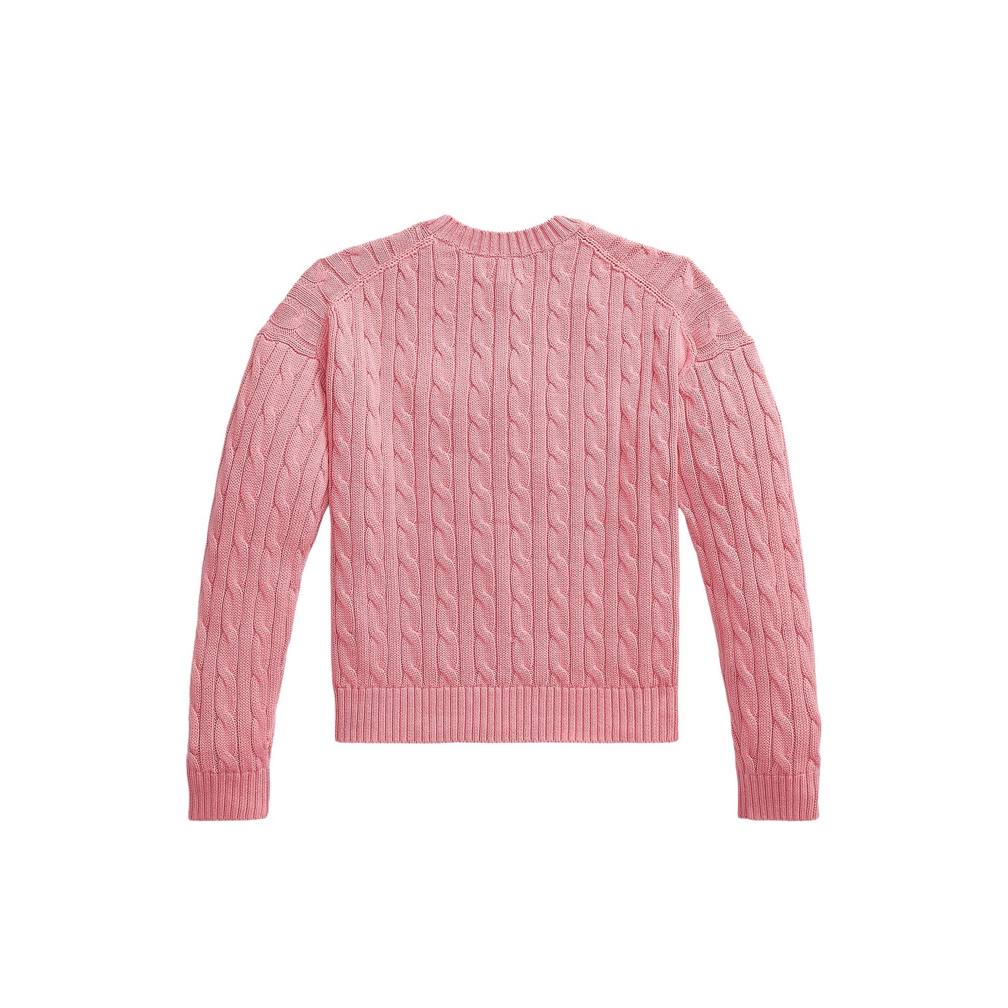 RALPH LAUREN Maglia rosa a trecce con scollo a V bambina