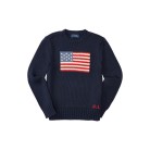 RALPH LAUREN Maglia blu navy in cotone con bandiera bambini