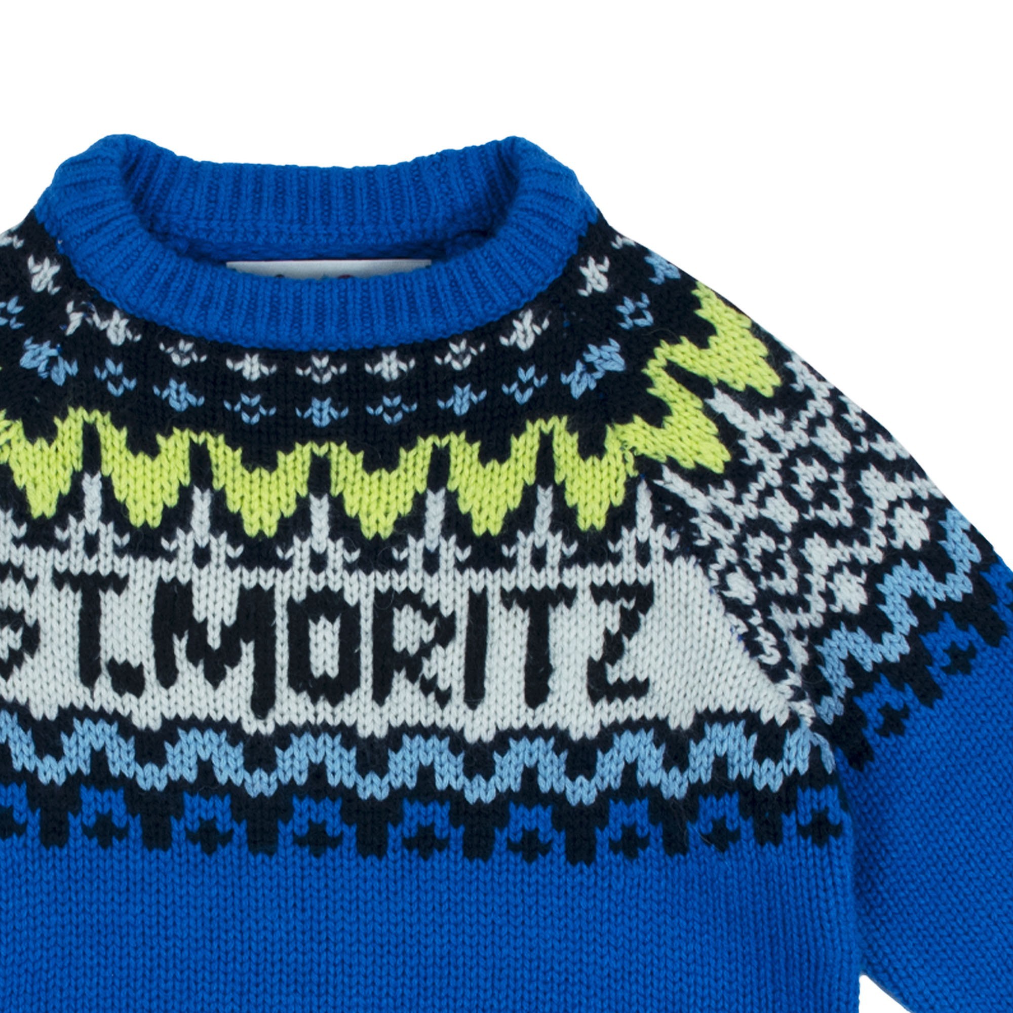 Maglioncino modello girocollo mistolana morbidissima con scritta st. moritz d'avanti