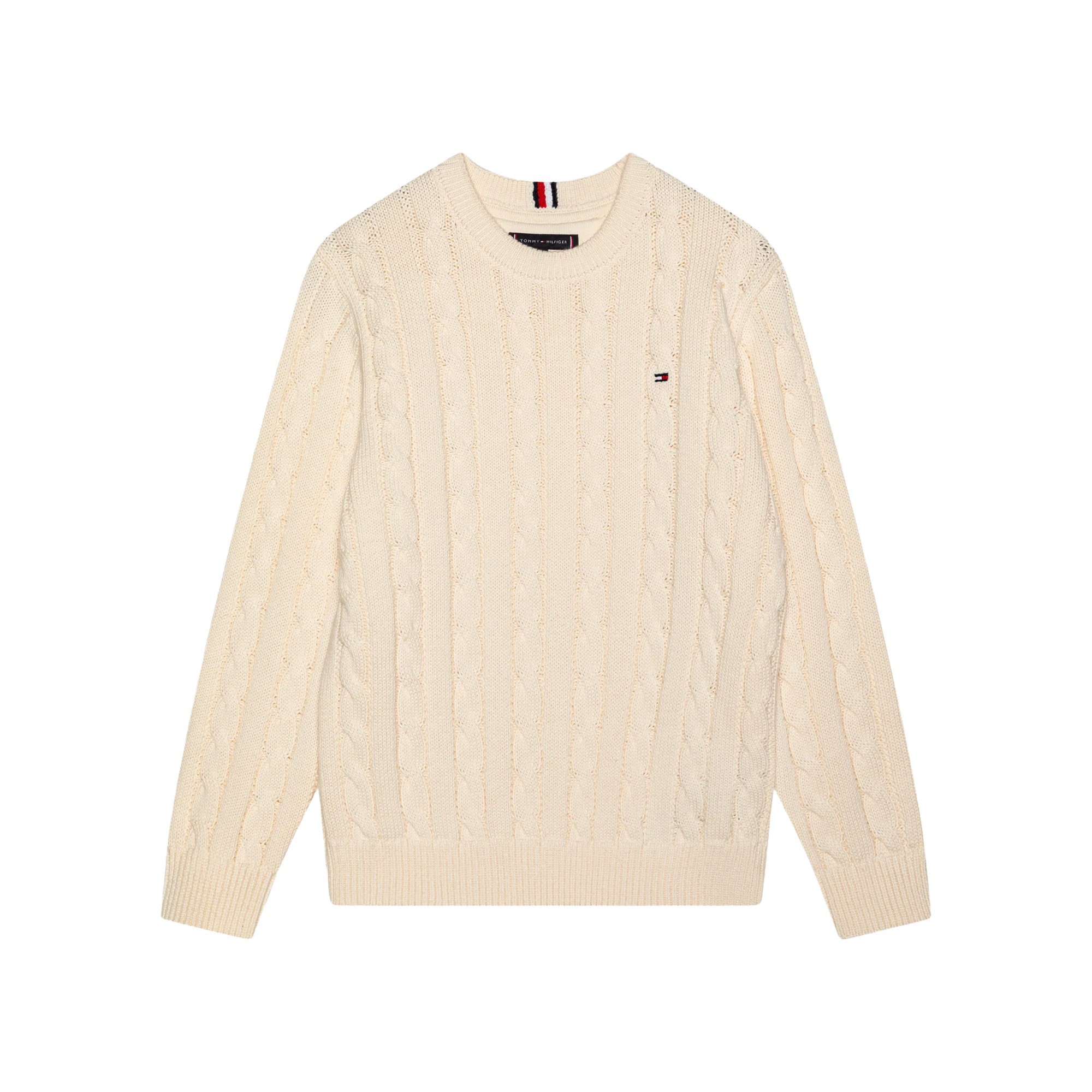 TOMMY HILFIGER Pullover crema a maglia intrecciata bambino