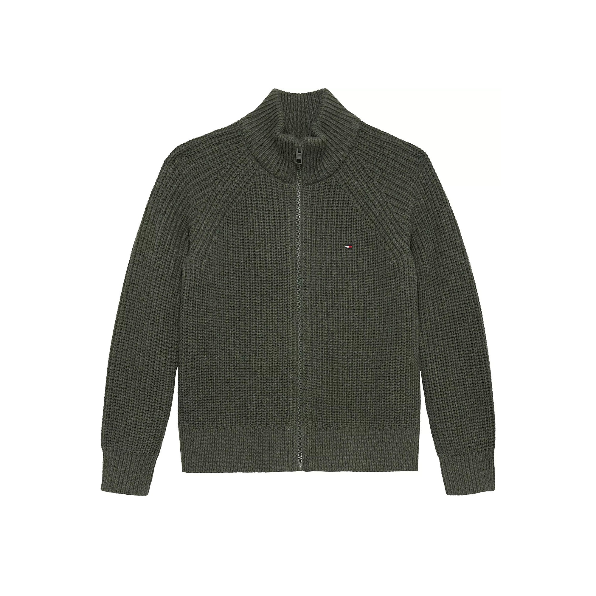 TOMMY HILFIGER Pullover full-zip verde oliva in cotone bambino
