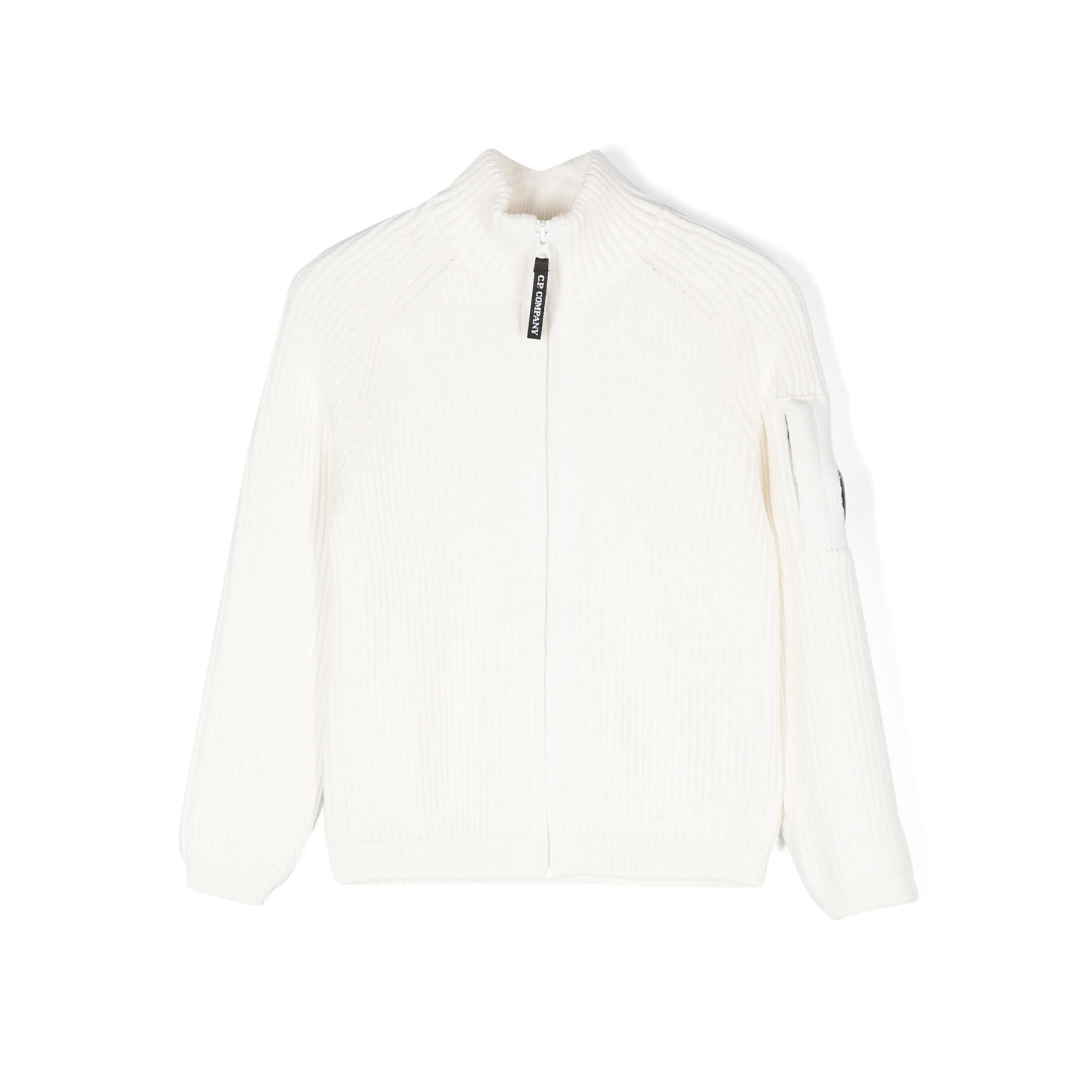 C.P. COMPANY Maglione bianco a collo alto full-zip bambini