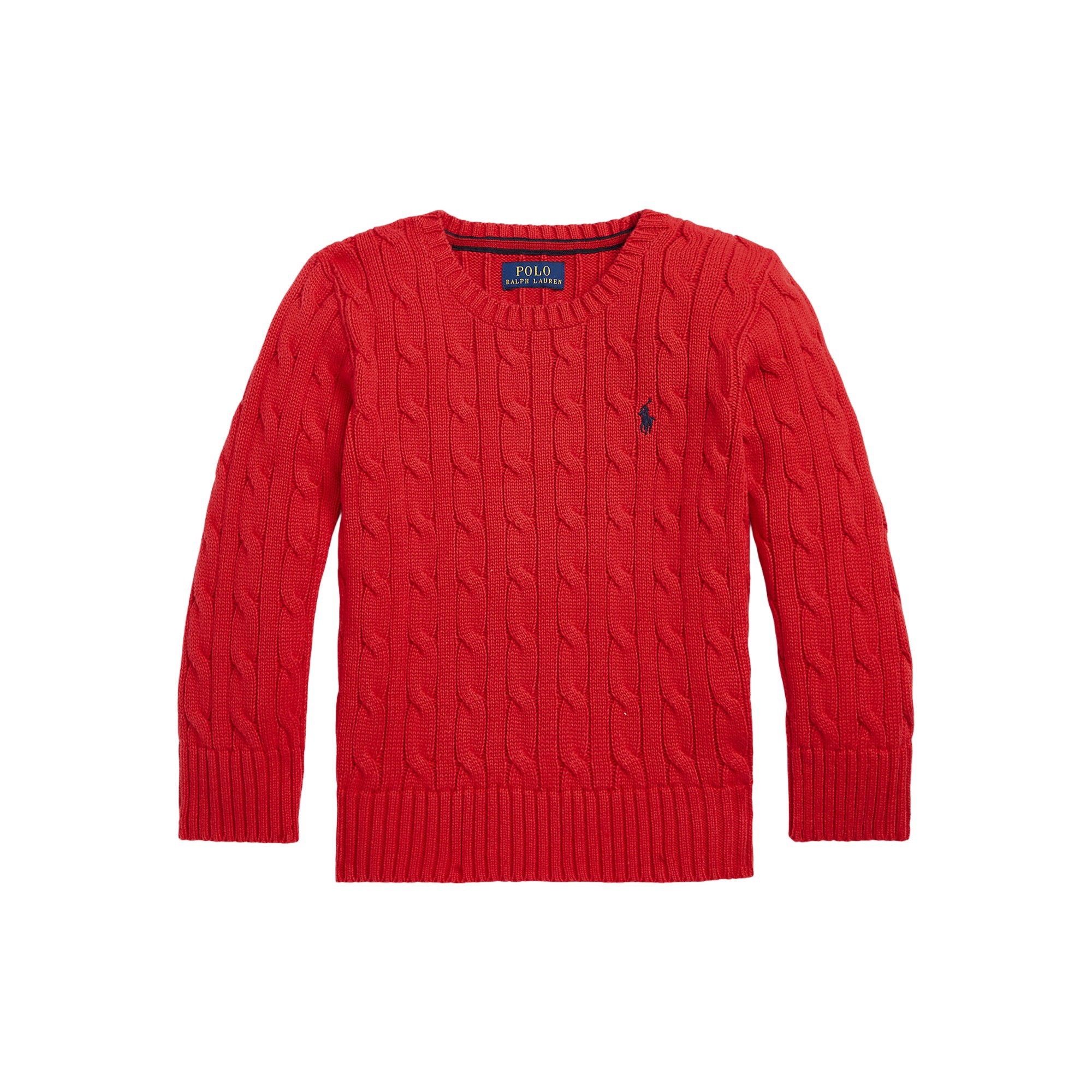 RALPH LAUREN Maglia rossa in cotone a trecce bambini