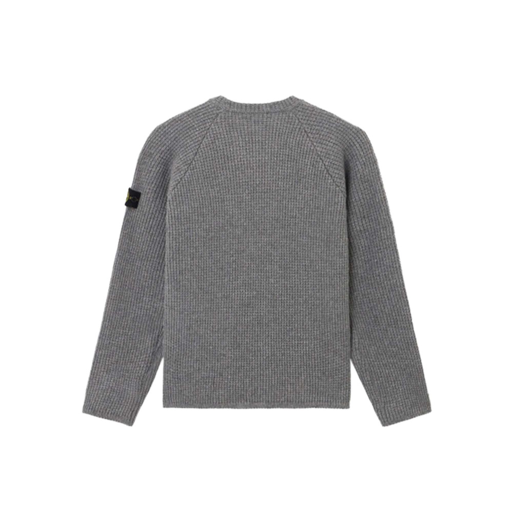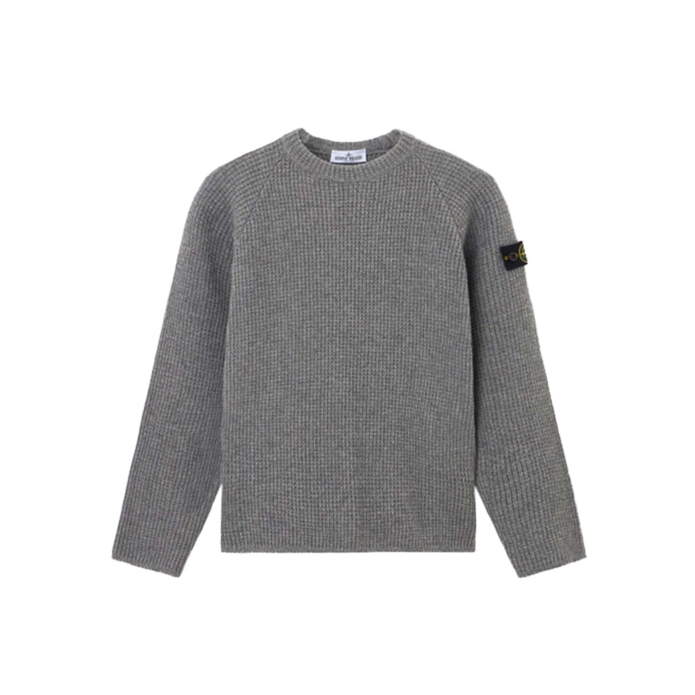 STONE ISLAND Maglione grigio girocollo a costine bambini